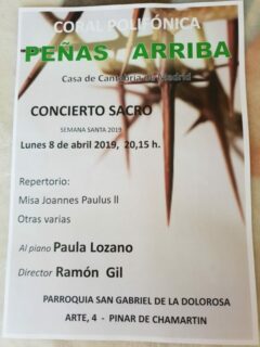 Nuestro Coro tiene organizado su viaje, combinando turismo y participaciones como coral, en dos mitades: Del 1 al 3 de mayo en el Valle del Pas y Liébana, y del 3 al 5 de mayo en Santoña y Medina de Pomar. El programa previsto es el siguiente: 2 de mayo: Selaya: Se visitará Nuestra Señora de Valvanuz, Museo de las Amas de Cría Pasiega, Fabrica de Sobaos Joselín. Castañeda: comida….