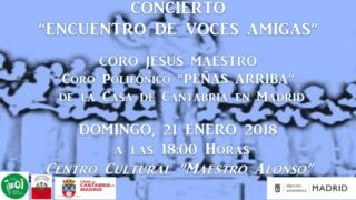 Viernes, 22. Diciembre 2017 – 19:00 El viernes 22 de diciembre a las 19:00 horas, en la Capilla de la Virgen Bien Aparecida de la Casa de Cantabria en Madrid, se iniciará el Concierto de Navidad del Coro Polifónico de la Casa “Peñas Arriba” dirigidos por D. Ramón Gil. Se contará con laCoral Therpsichore como coro invitado.