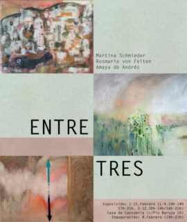 La exposición permanecerá abierta al público hasta el 15 de febrero. El pasado 9 de febrero de 2019 a las 19:00 horas, en la Sala María Blanchard, primera planta, se inauguró la exposición de pintura “Entre Tres”, de Martina Schmieder, Rosmarie von Felten y Amaya de Andrés.
