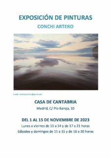Del 1 al 15 de noviembre la Sala de exposiciones Gutiérrez Solana (Hall) acoge la exposición “Cielos de Cantabria” de la pintora Conchi Artero, nos traerá una totalidad de 20 obras.