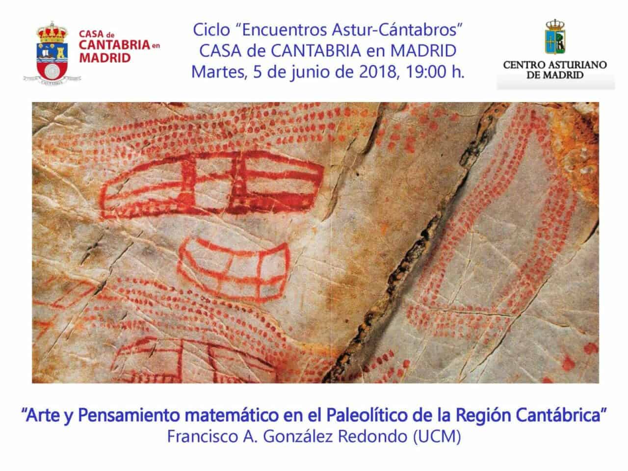 El próximo 5 de junio a las 19:00 horas, en el Salón de Actos Severiano Ballesteros. Tendrá lugar la tercera conferencia del ciclo Encuentro Astur-Cántabro, fruto de la colaboración y las buenas relaciones que se mantienen con el Centro Asturiano de Madrid, impartida por D. Francisco A. González Redondo, Profesor Titular de Historia de la Ciencia en la Universidad Complutense de Madrid, bajo el título: «Arte y pensamiento matemático en la Prehistoria de la Cornisa Cantábrica».