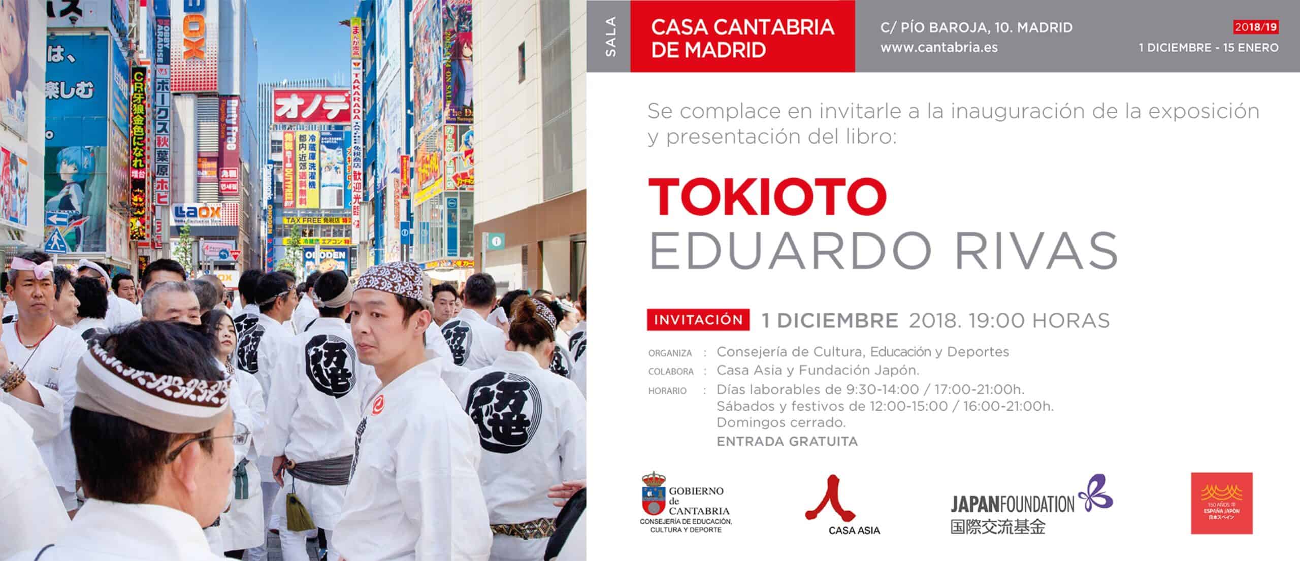 Del 1 de Diciembre de 2018 al 15 de enero de 2019, en la Sala Gutierrez Solana, hall, y Sala María Blanchard, primera planta, se presenta la exposición y presentación del libro: «TOKIOTO» Tradición y Modernidad, del artista santanderino Eduardo Rivas Muñoz.