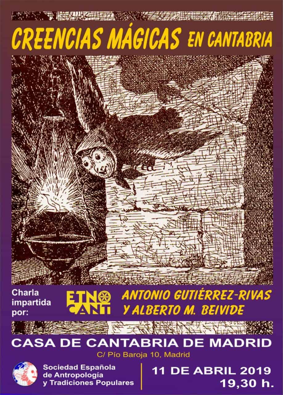 El próximo 11 de abril de 2019 a las 19:30 horas, en el Salón de Actos Severiano Ballesteros, D. Alberto Beivide (Escritor-director del programa Cantabria Oculta), y D. Antonio Gutierrez-Rivas (Escritor-codirector de Cantabria Oculta) impartirán la conferencia titulada: “Creencias mágicas en Cantabria”.