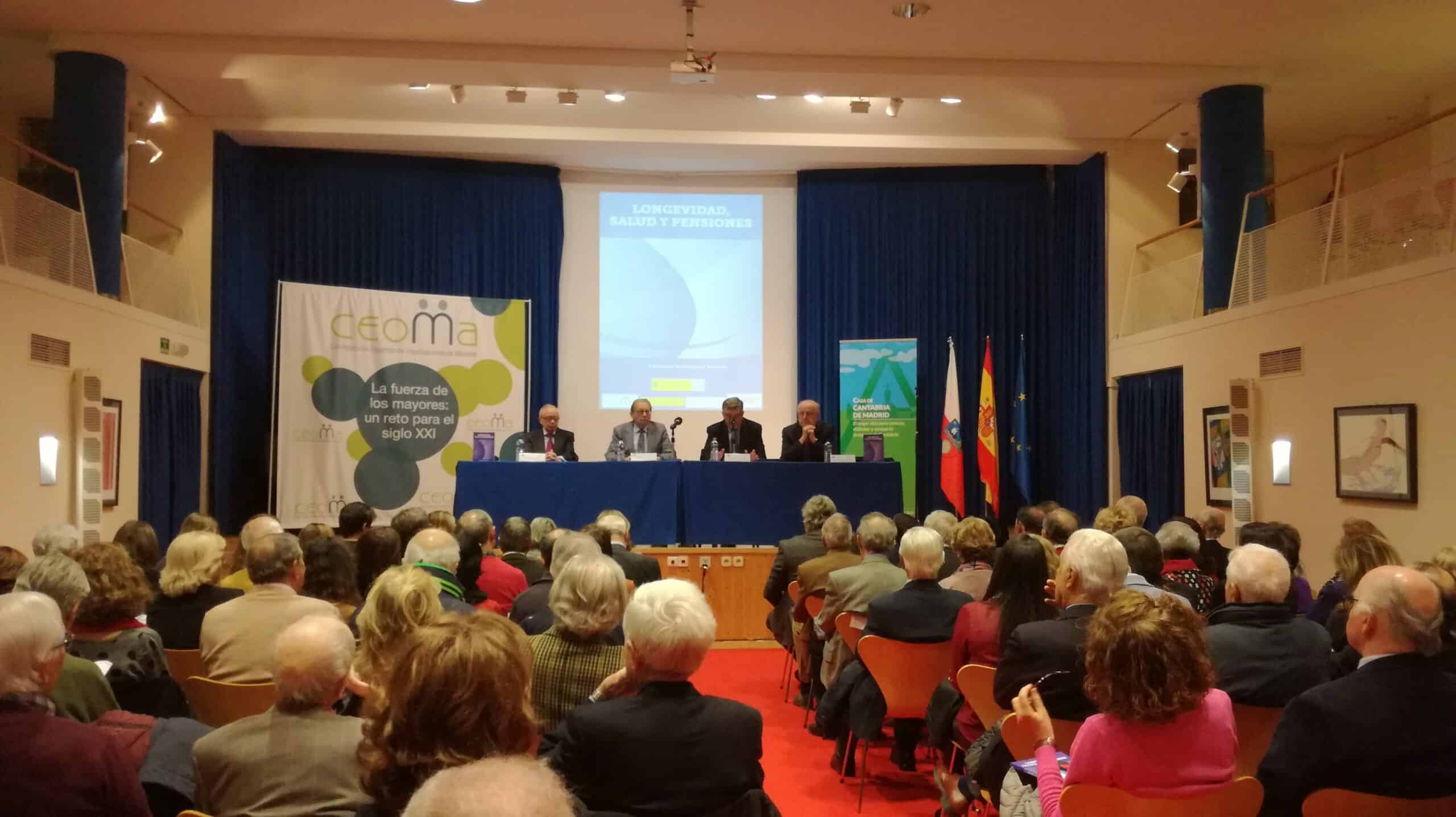 En un acto organizado por CEOMA y presidido por Juan Manuel Martínez Gómez, Presidente de la Confederación, se presentó ‘Longevidad, Salud y Pensiones’ segundo libro escrito por Eduardo Rodríguez Rovira, Fundador, ex presidente y actual Vicepresidente de la Confederación Española de Organizaciones de Mayores – CEOMA. Dicho acto tuvo lugar en un repleto Salón de actos de la Casa de Cantabria en Madrid, de la que Rodríguez Rovira es Fundador, ex Presidente y Presidente de Honor .