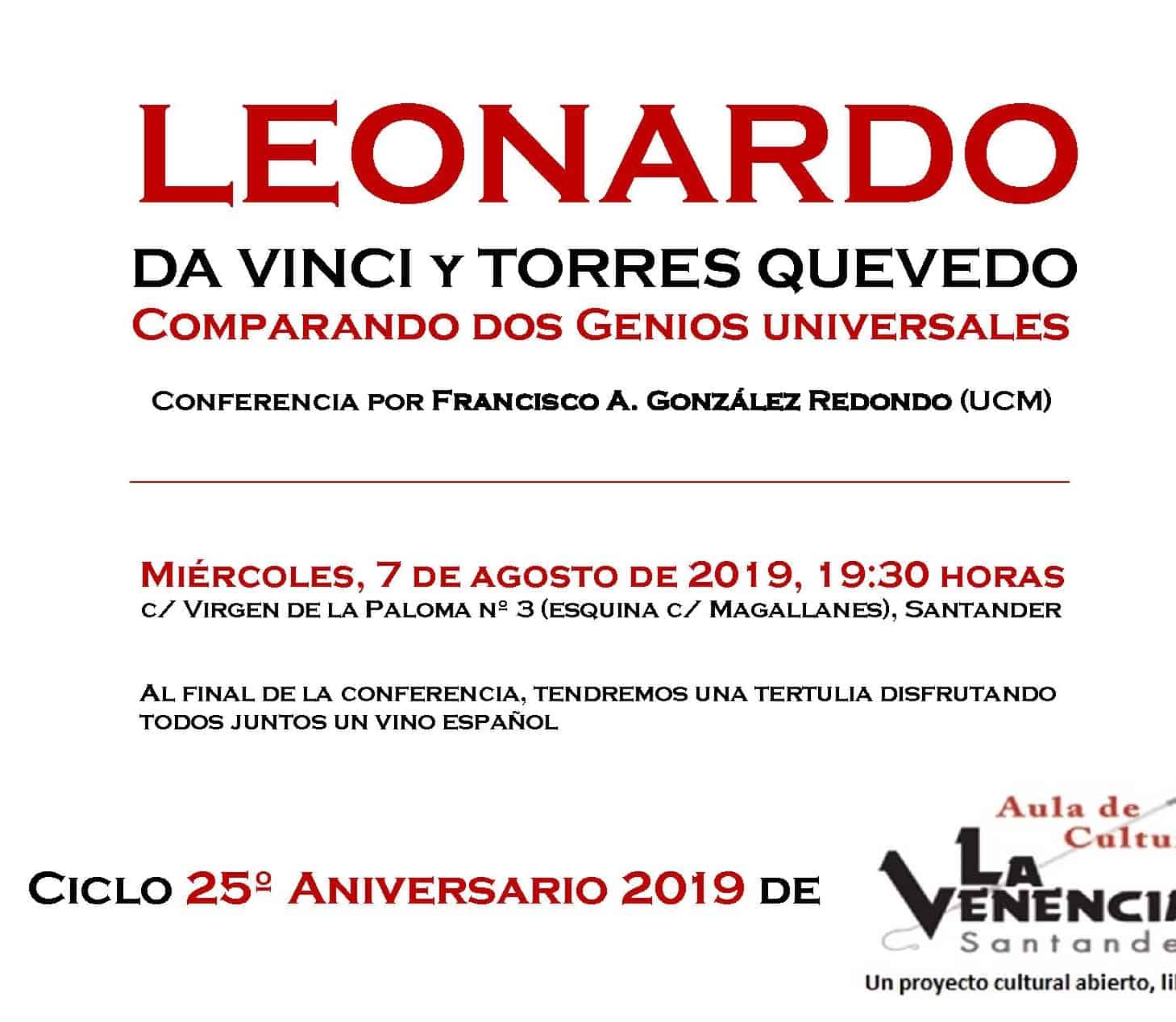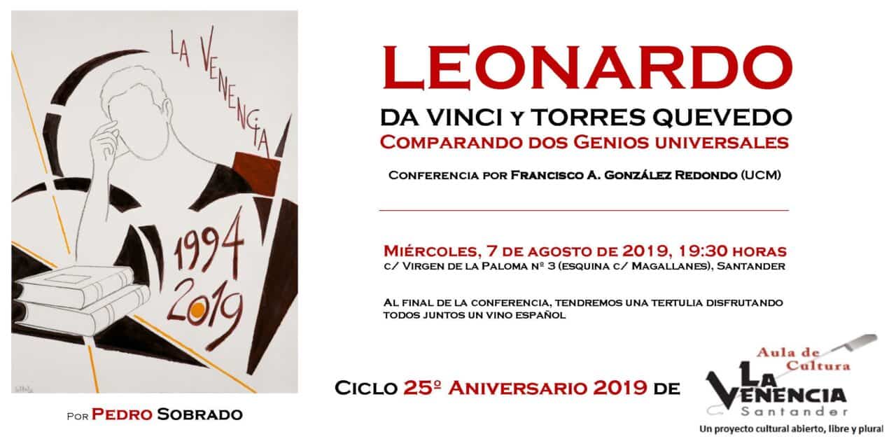 1 de agosto de 2019 Conferencias Conferencia «Leonardo da vinci y Torres Quevedo comparando dos genios universales»
