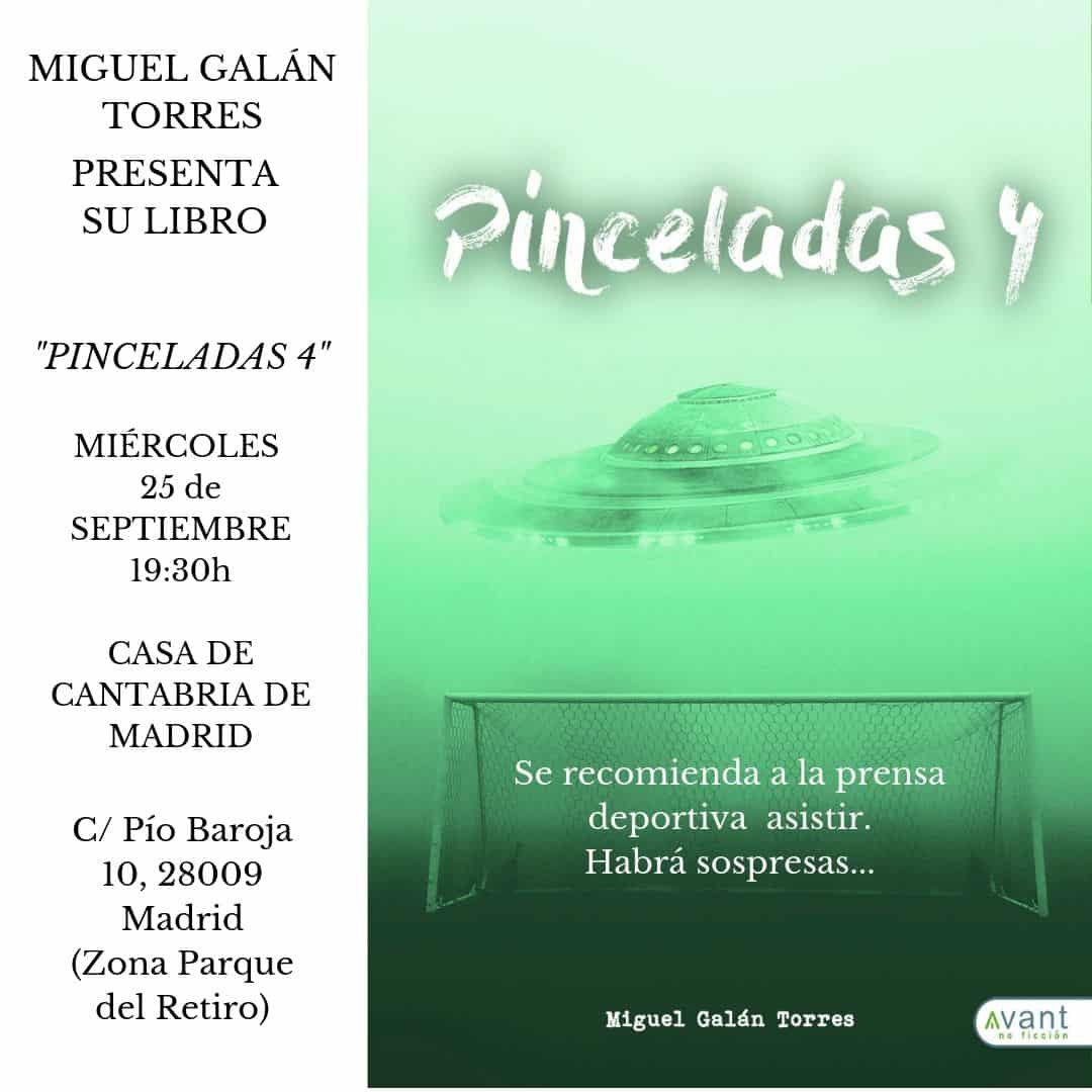 El miércoles 25 de Septiembre a las 19:30 horas, en el Salón de Actos Severiano Ballesteros, D. Miguel Galán Torres nos presentará su libro “Pinceladas 4”, en donde se reflejan vivencias y convivencias de este autor de ascendencia cántabra (Torrelavega).