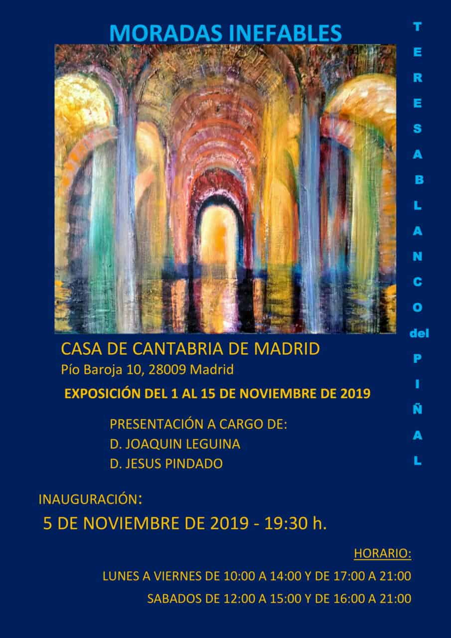 El martes 5 de Noviembre a las 19:30 horas, en la Sala Gutiérrez Solana, hall, se inaugurará la exposición de pintura de Teresa Blanco, retratista, pintora y escultora cántabra titulada “Moradas inefables”.