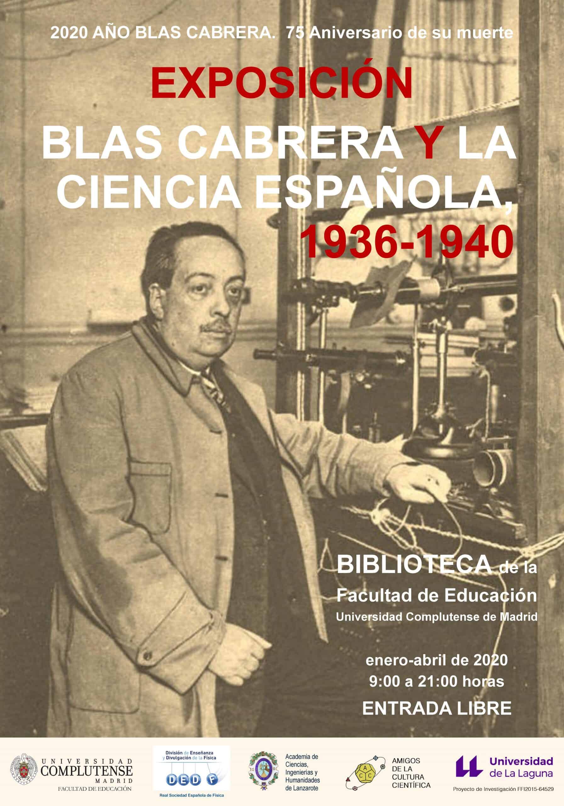 – Cartel de la Exposición «Blas Cabrera y la Ciencia española, 1936-1940», que inauguraremos oficialmente el martes 11 de febrero, a las 11:00 h., en la Facultad de Educación de la UCM: https://biblioteca.ucm.es/edu/blas-cabrera-y-la-ciencia-espanola-1936-1940
