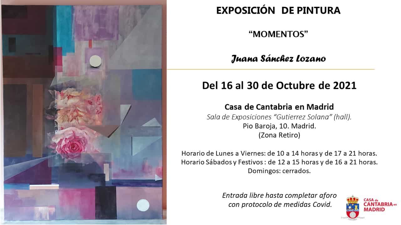 Del 16 al 30 de Octubre, la sala de exposiciones Gutiérrez Solana, hall, acogerá la colección de pintura “Momentos” de Juana Sánchez Lozano, cuya figuración, color y sentimiento nos sorprenderá.