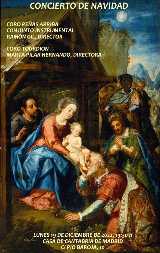 El próximo 19 de diciembre a las 19:30 horas, el Coro “Peñas arriba” de la Casa de Cantabria en Madrid, dará su tradicional concierto de Navidad en la Capilla de la Bien aparecida, este año estará ambientado en la música del Siglo de oro Español, acompañará al coro un conjunto instrumental, todos dirigidos por Ramón Gil. Contaremos con la presencia del Coro Tourdion, dirigido por Marta Pilar Hernando quien compartirá concierto con nuestro querido Coro. Os esperamos a todos en este maravilloso concierto de Navidad.