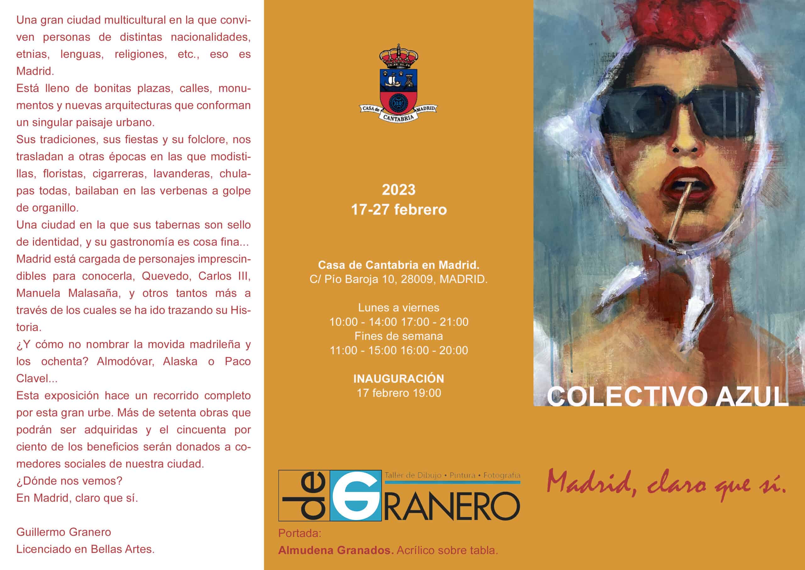 La Sala de exposiciones Maria Blanchard, 1ª planta de la Casa de Cantabria en Madrid, acogerá la exposición “Madrid, claro que sí” realizada por el Colectivo AZUL del 17 al 27 de febrero.