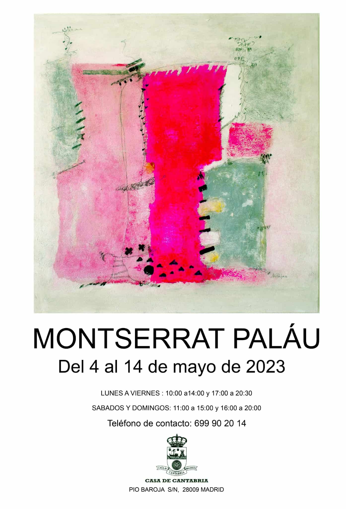 La Sala de exposiciones Maria Blanchard 1ª planta de la Casa de Cantabria en Madrid, acogerá del 3 al 15 de mayo la exposición de Montserrat Paláu.