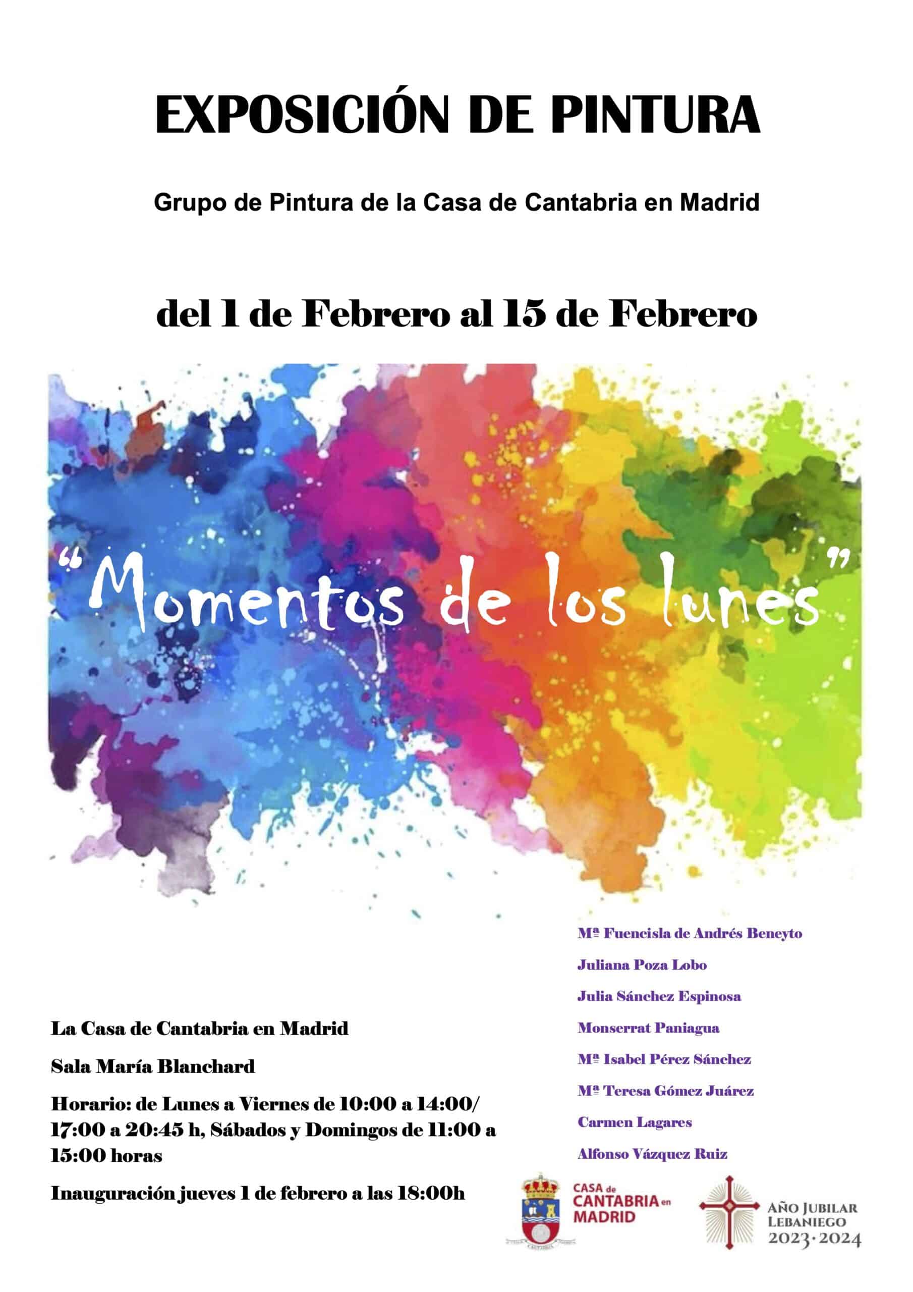 Del 1 al 15 de Febrero, la Sala de exposiciones María Blanchard acogerá la exposición al óleo del Grupo de Pintura de la Casa de Cantabria en Madrid, “Momentos de los Lunes”.