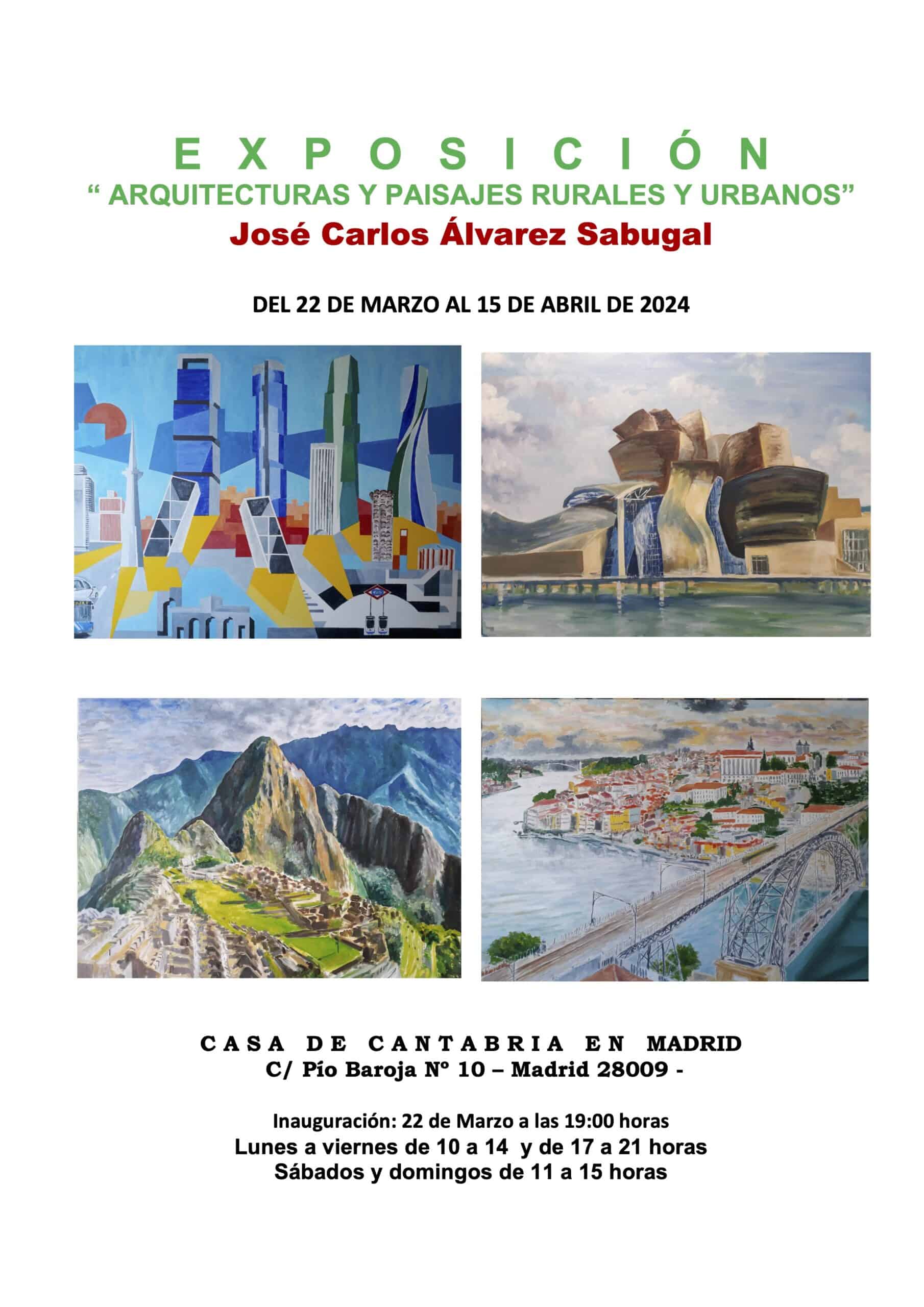 La Sala de exposiciones Gutiérrez Solana (Hall) de la Casa de Cantabria en Madrid acogerá del 22 de marzo al 15 de abril la exposición de pintura «Arquitecturas y paisajes rurales y urbanos» del pintor y arquitecto José Carlos Álvarez Sabugal.