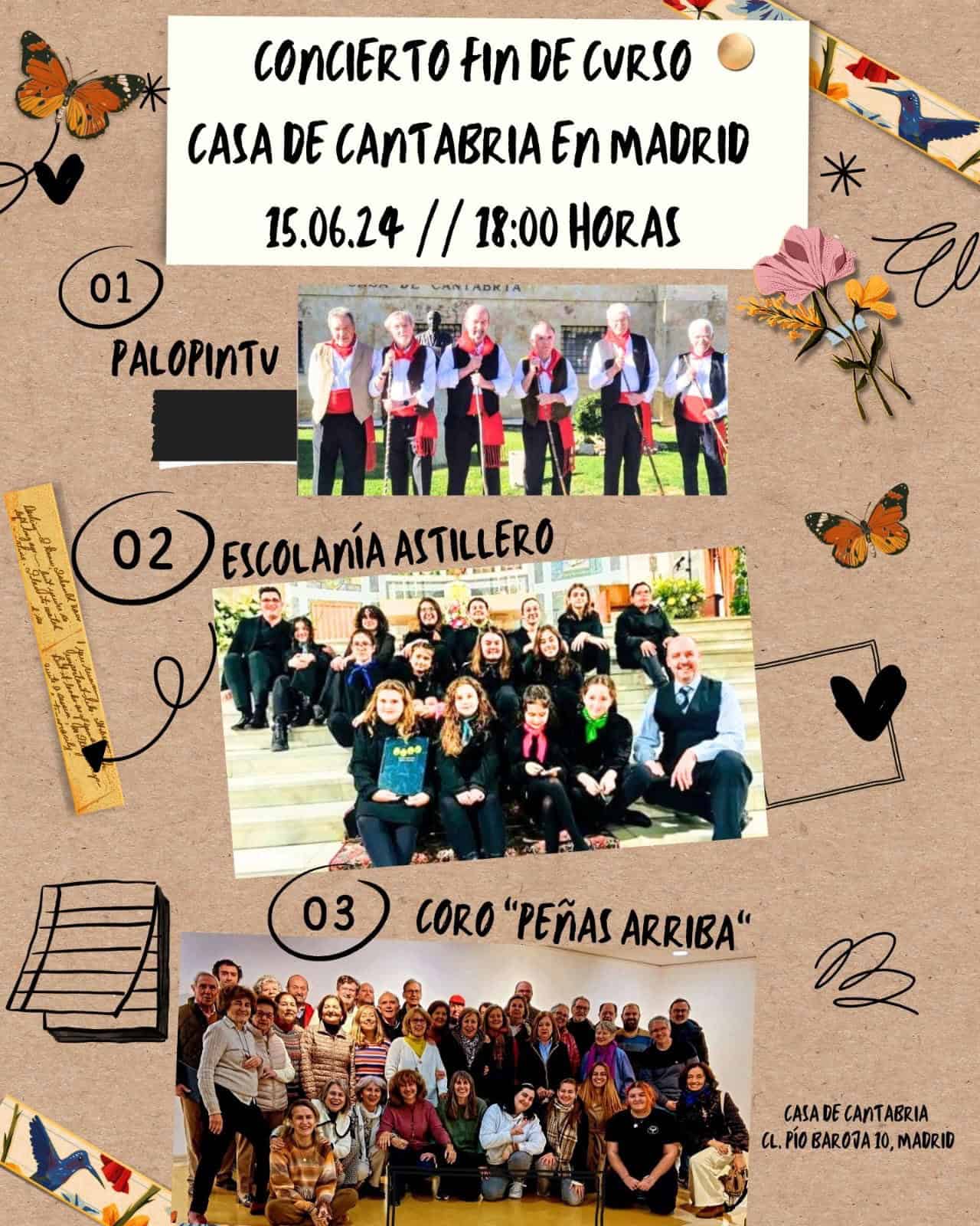 El próximo 15 de Junio a las 18:00 horas en el Salón de actos Severiano Ballesteros-Ataúlfo Argenta tendrá lugar el concierto de fin de curso de nuestro querido coro “ Peñas arriba” acompañados por “ Escolanía de Astillero” y el grupo Palopintu”.
