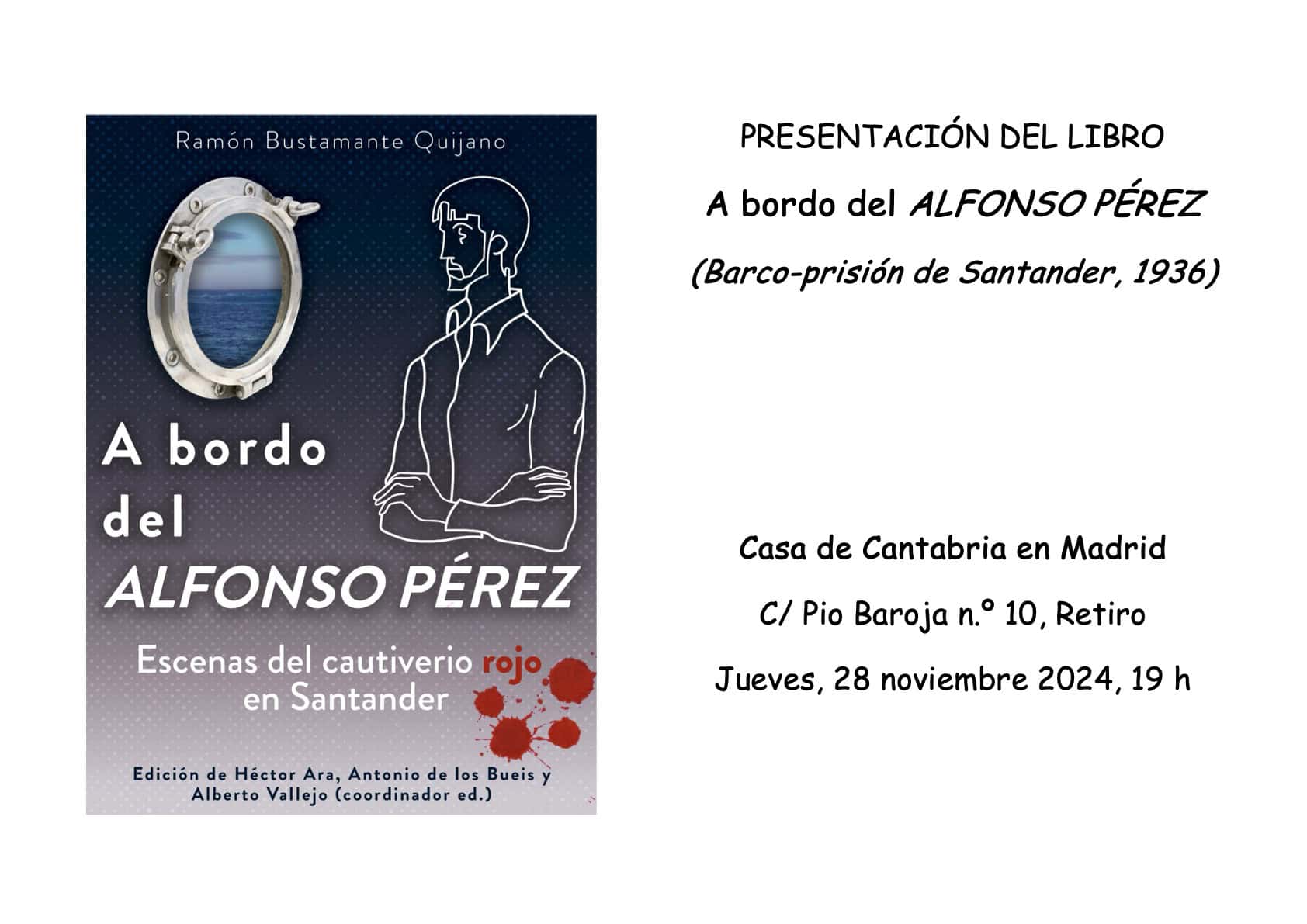 El jueves 28 de noviembre a las 19:00 horas en el Salón de actos Severiano Ballesteros-Ataúlfo Argenta, tendrá lugar la presentación del libro “A BORDO DEL ALFONSO PÉREZ”.
