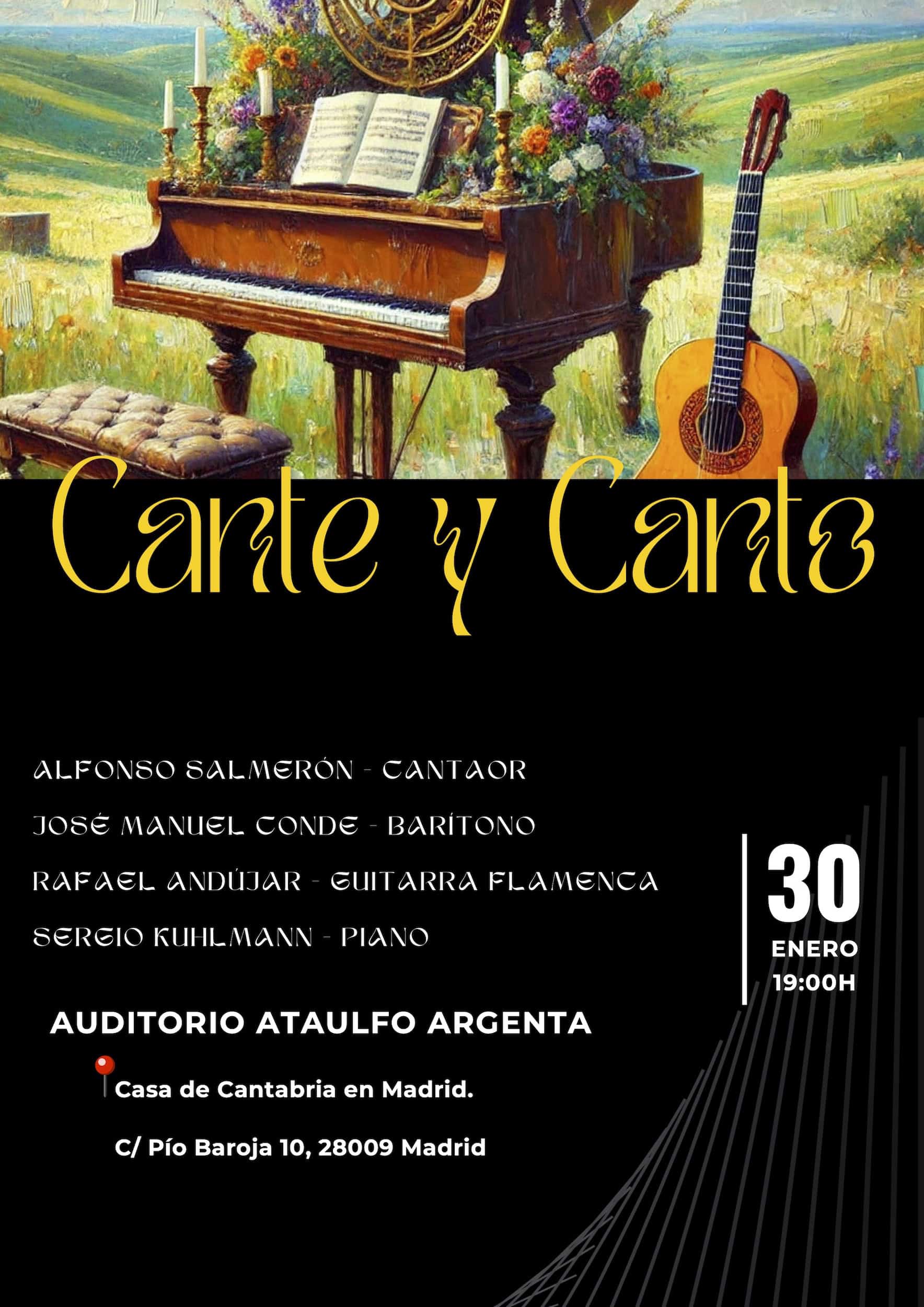 “CANTE Y CANTO” trae al escenario de la Casa de Cantabria en Madrid al cantaor Alfonso Salmerón, al barítono José Manuel Conde.