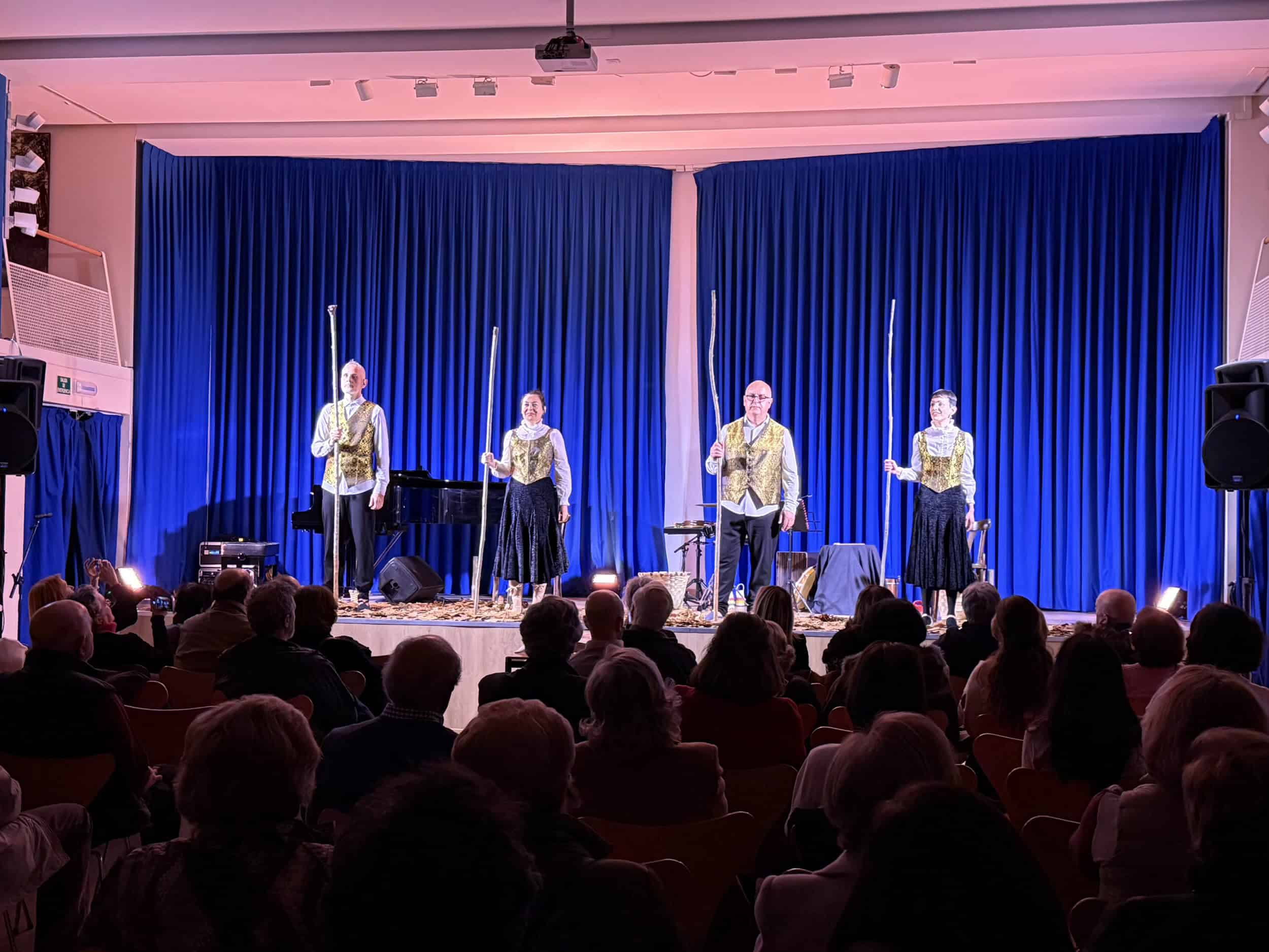 La Casa de Cantabria en Madrid acogió ayer en su Salón de Actos Severiano Ballesteros-Ataúlfo Argenta la representación de “Tonada. Palabra, música y escena en el Camino”, un espectáculo promovido por la Fundación Camino Lebaniego y la compañía La Machina Teatro. Bajo la dirección de Francisco Valcarce, esta propuesta artística combinó teatro, música y poesía para rendir homenaje a la tradición cultural del Camino Lebaniego.
