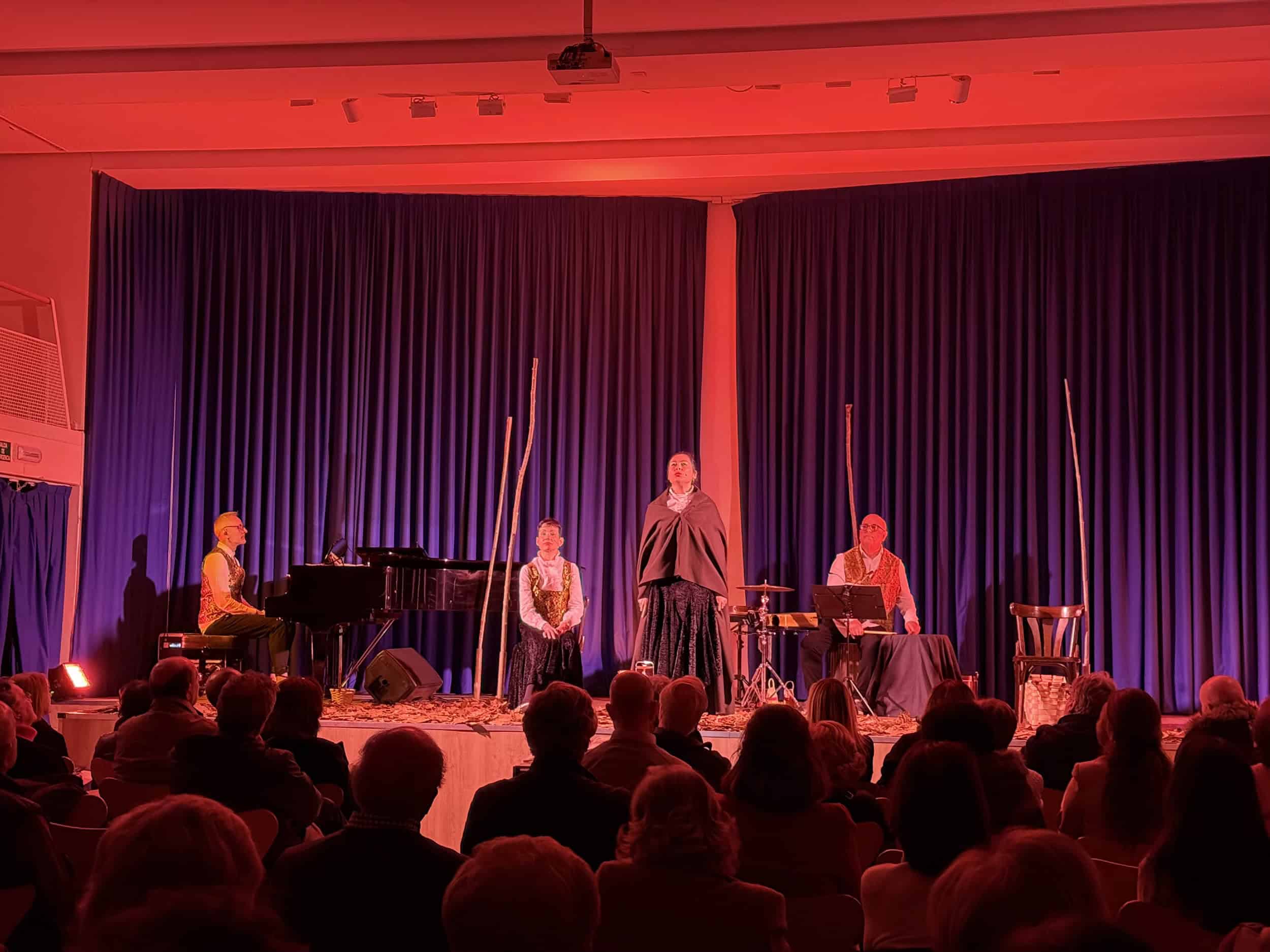 La puesta en escena contó con la interpretación de la actriz Patricia Cercas, el acompañamiento musical de Pepe Santos (piano y teclados) y Víctor Aja (percusión), y la voz de Irene Sánchez “Filandera”. A través de una cuidada selección de poemas y canciones tradicionales, el espectáculo logró transportar al público a la esencia misma de la memoria y la identidad cántabra.