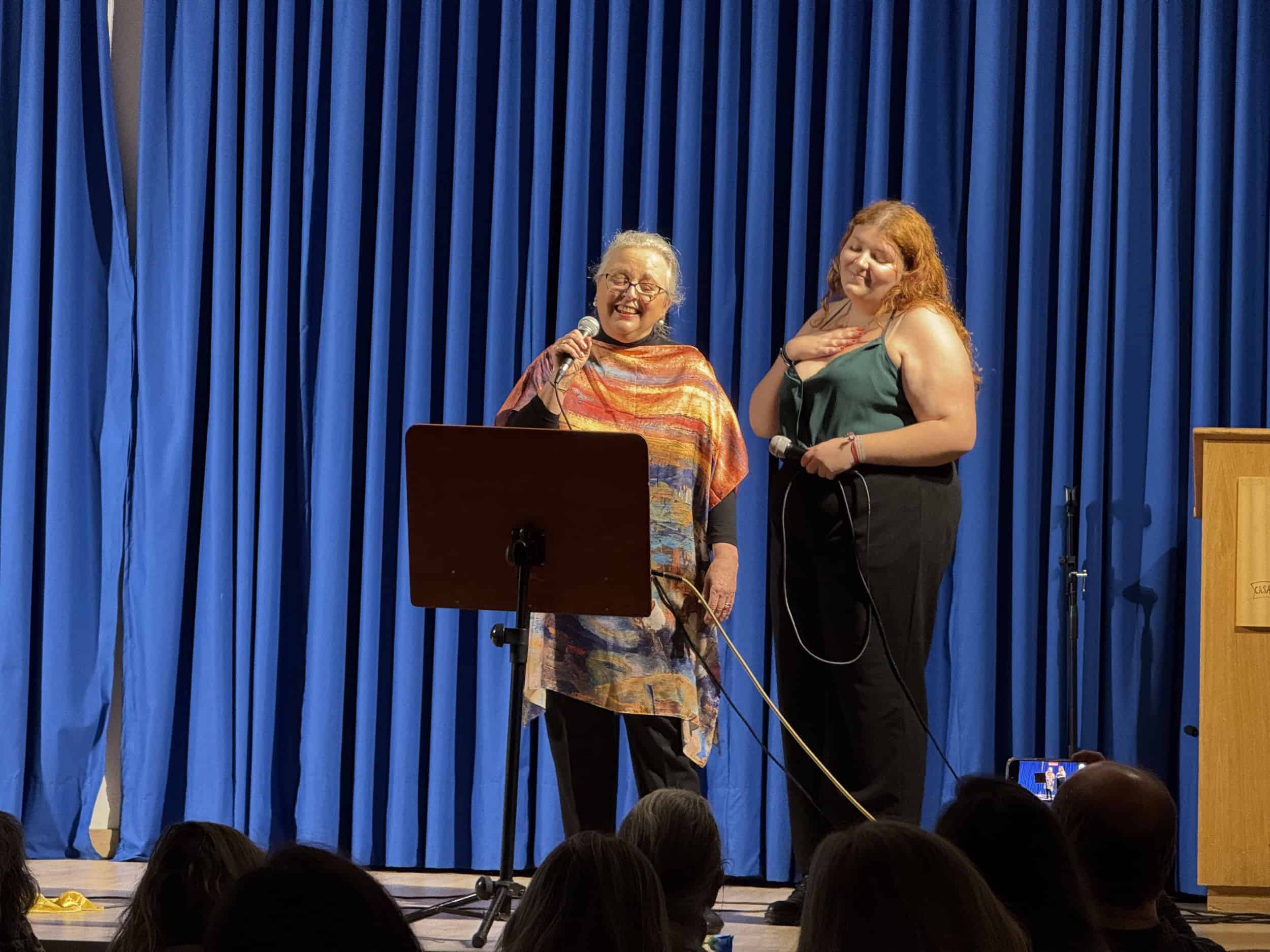 La velada comenzó con la actuación del dúo musical «Inés y Ana», quienes deleitaron a los asistentes con una selección de clásicos del bolero y más, incluyendo temas emblemáticos como Amor Eterno y La Bikina.
