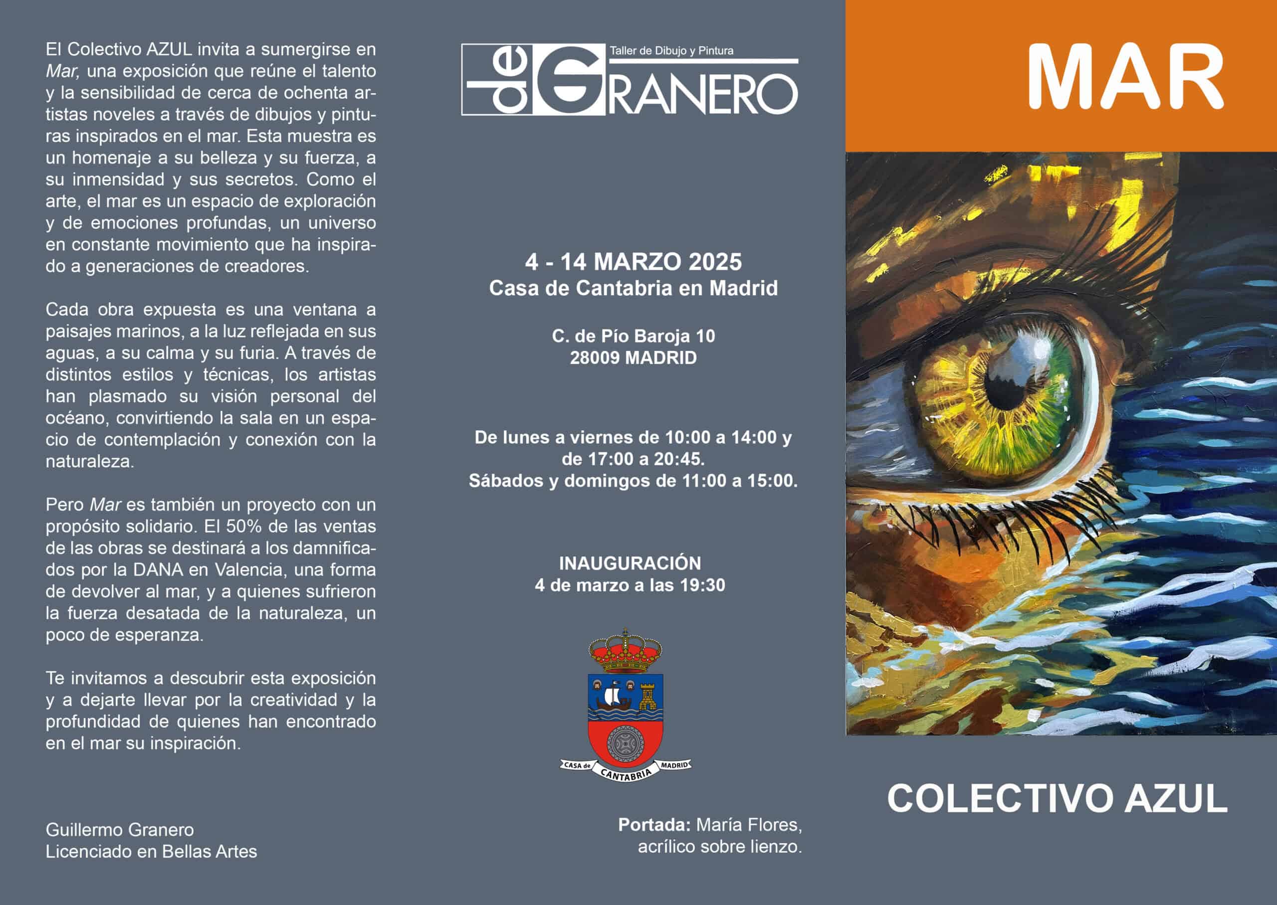 La sala de exposiciones María Blanchard del 4 al 14 de marzo, acoge la exposición del COLECTIVO AZUL que visita de nuevo nuestras salas. El Colectivo AZUL invita a sumergirse en MAR, una exposición que reúne el talento y la sensibilidad de cerca de ochenta artistas noveles a través de dibujos y pinturas inspirados en el mar.