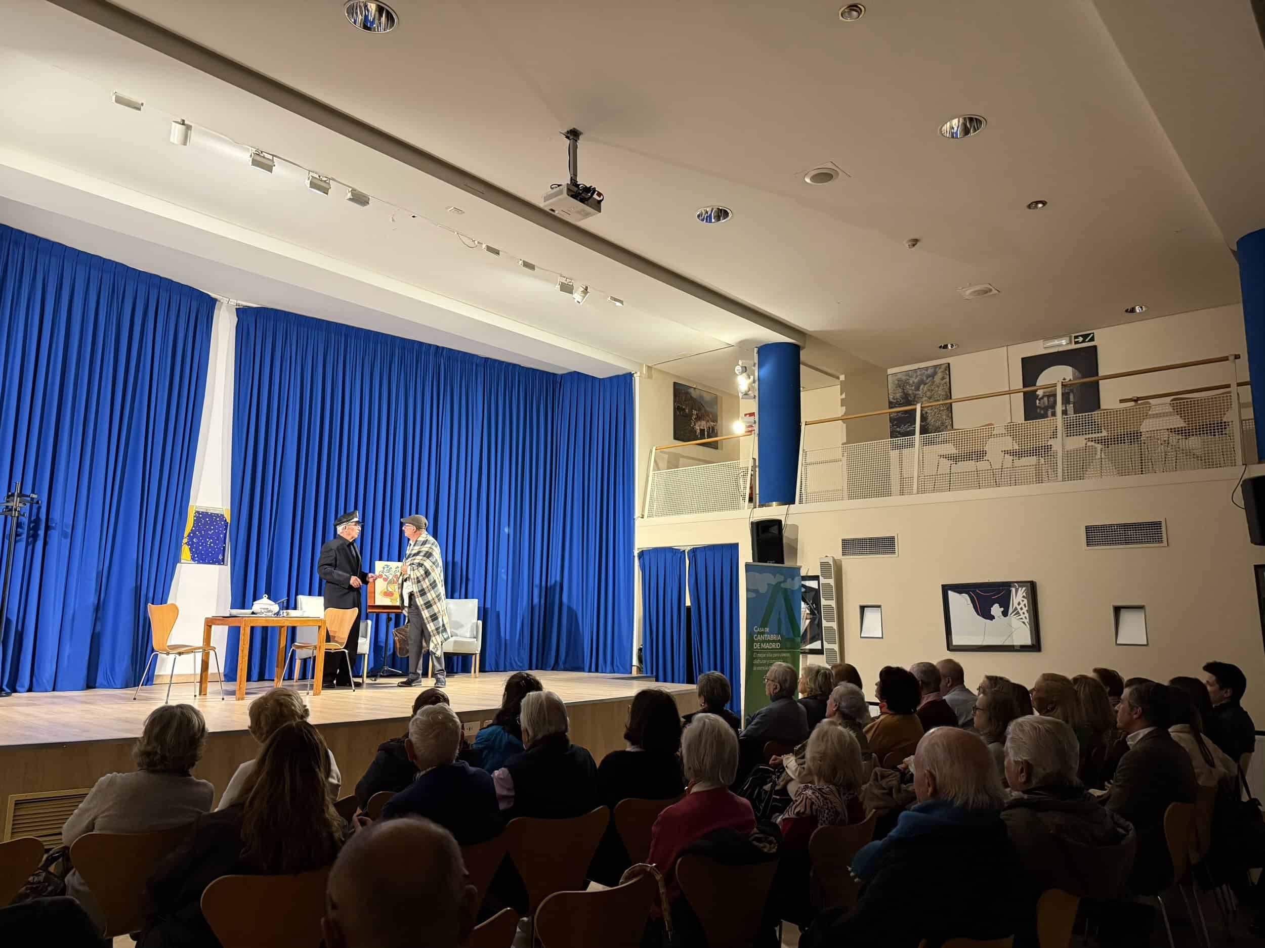 El salón de actos Severiano Ballesteros-Ataúlfo Argenta de la Casa de Cantabria en Madrid acogió la representación de la comedia teatral «El fresco del fuego» de Pedro Muñoz Seca, a cargo del grupo de teatro «Nolasco».