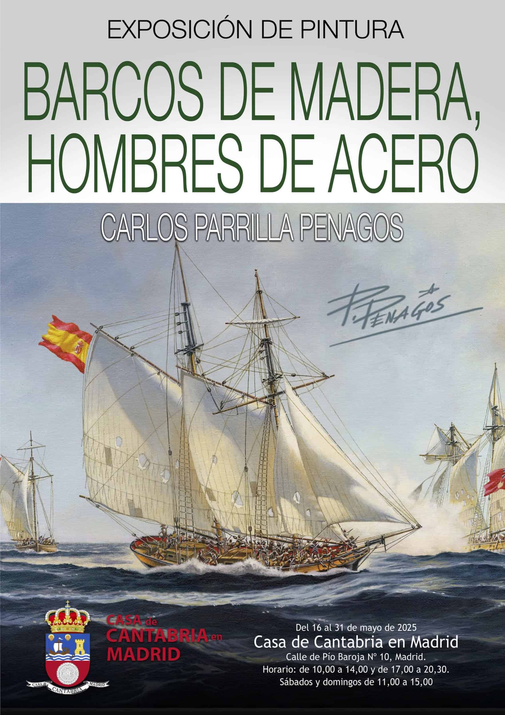 La sala de exposiciones Gutiérrez Solana del 16 al 31 de mayo acoge la exposición de pintura del pintor santanderino Carlos Parrilla Penagos “Barcos de madera, hombres de acero”. En ella se ilustran hechos e hitos navales que transformaron nuestra Historia y la del mundo entero, cuyas naos, galeones, navíos o fragatas surcaron los océanos para conformar la primera globalización de la Historia.