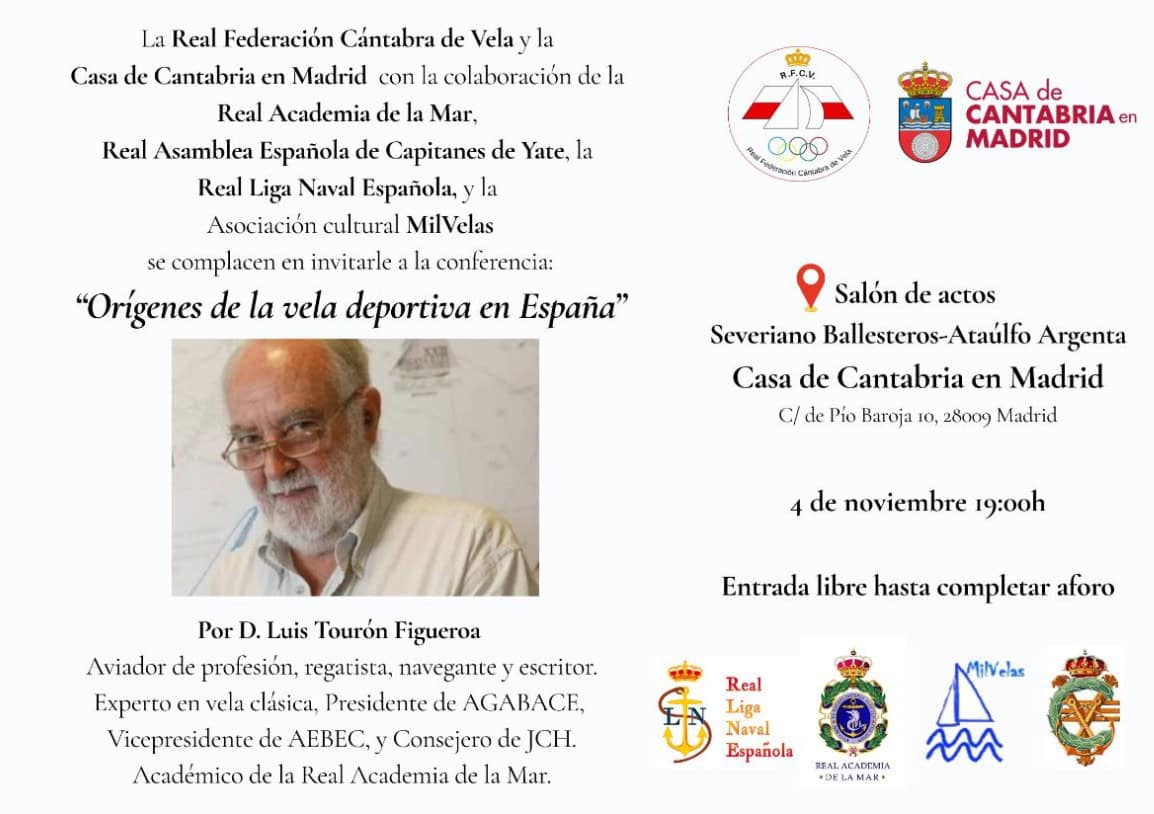 Este acto está organizado por la Real Federación Cántabra de Vela y la Casa de Cantabria en Madrid, con la colaboración de la Real Asamblea Española de Capitanes de Yate, la Real Liga Naval Española y la Asociación Cultural MilVelas.