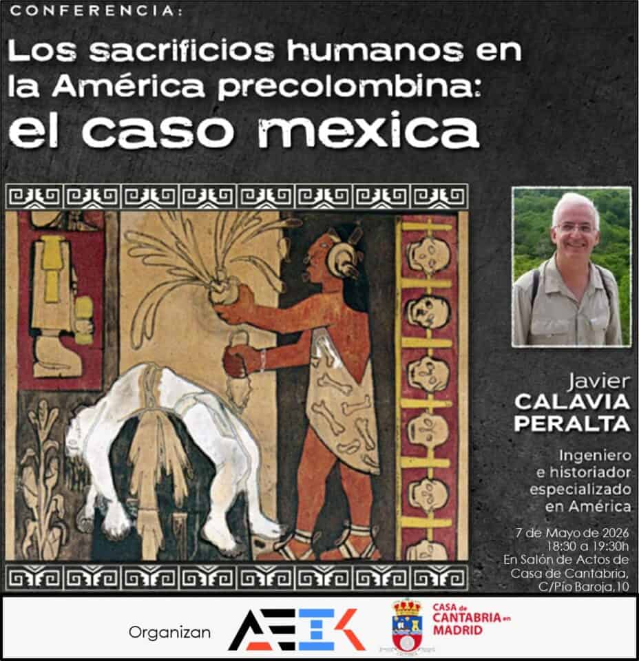 La Casa de Cantabria en Madrid y la Asociación de Eméritos IBM y Kyndryl invitan a todos los interesados en la historia y la antropología a la conferencia titulada «Los sacrificios humanos en la América precolombina: el caso mexica», que se llevará a cabo el próximo 7 de mayo de 2026. El evento tendrá lugar en nuestro Salón de Actos, en un horario de 18:30 a 20:00 horas.