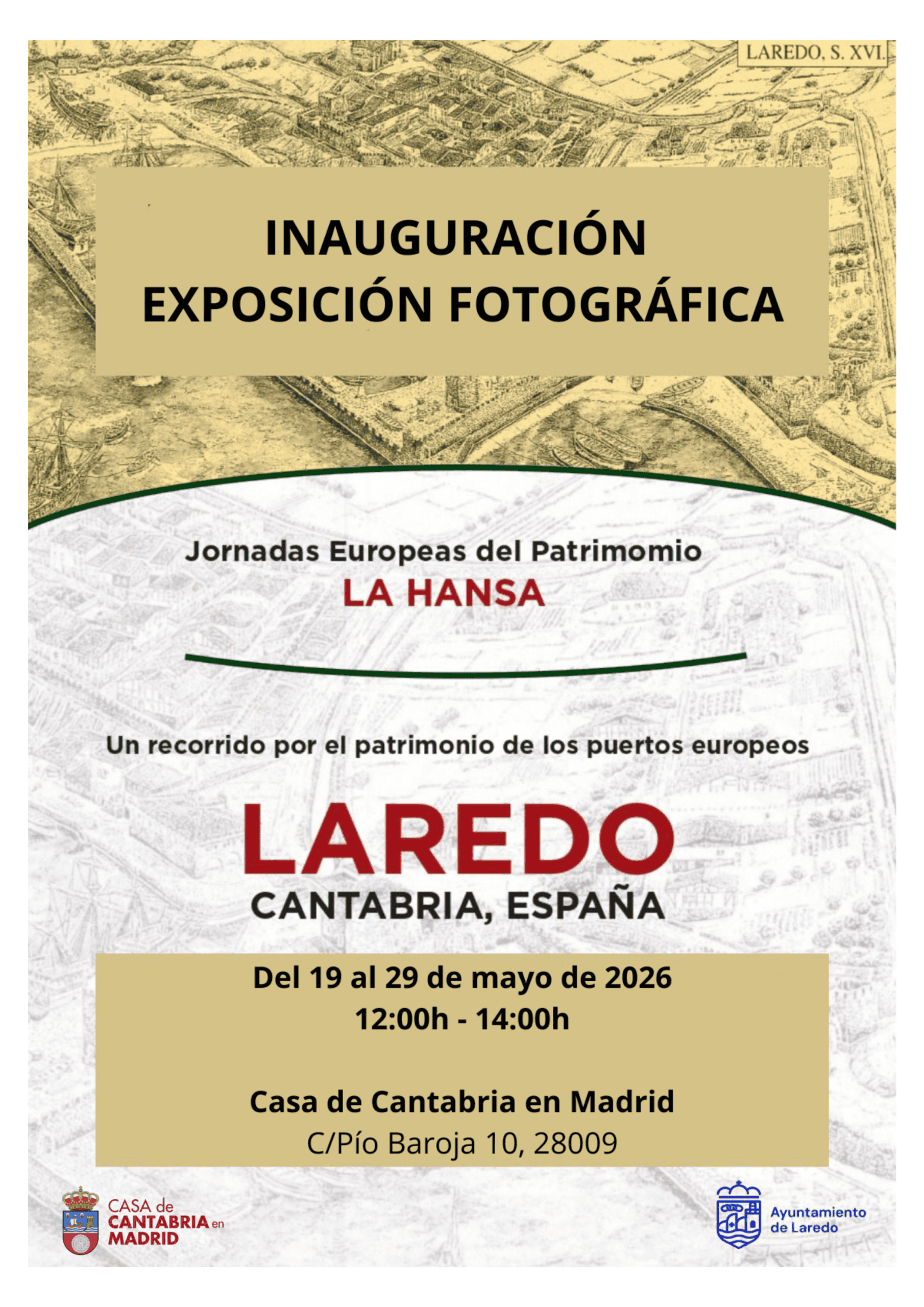 La Casa de Cantabria en Madrid, en colaboración con el Ayuntamiento de Laredo, socio de nuestra institución, invita a todos sus socios y amigos a la exposición fotográfica ‘Un recorrido por el patrimonio de los puertos europeos’. Esta muestra (enmarcada en las Jornadas Europeas del Patrimonio, proyecto conjunto de la Unión Europea y el Consejo de Europa), propone un fascinante viaje a través de la historia portuaria del continente, poniendo en valor su legado cultural y social como pieza clave en la identidad de Europa.