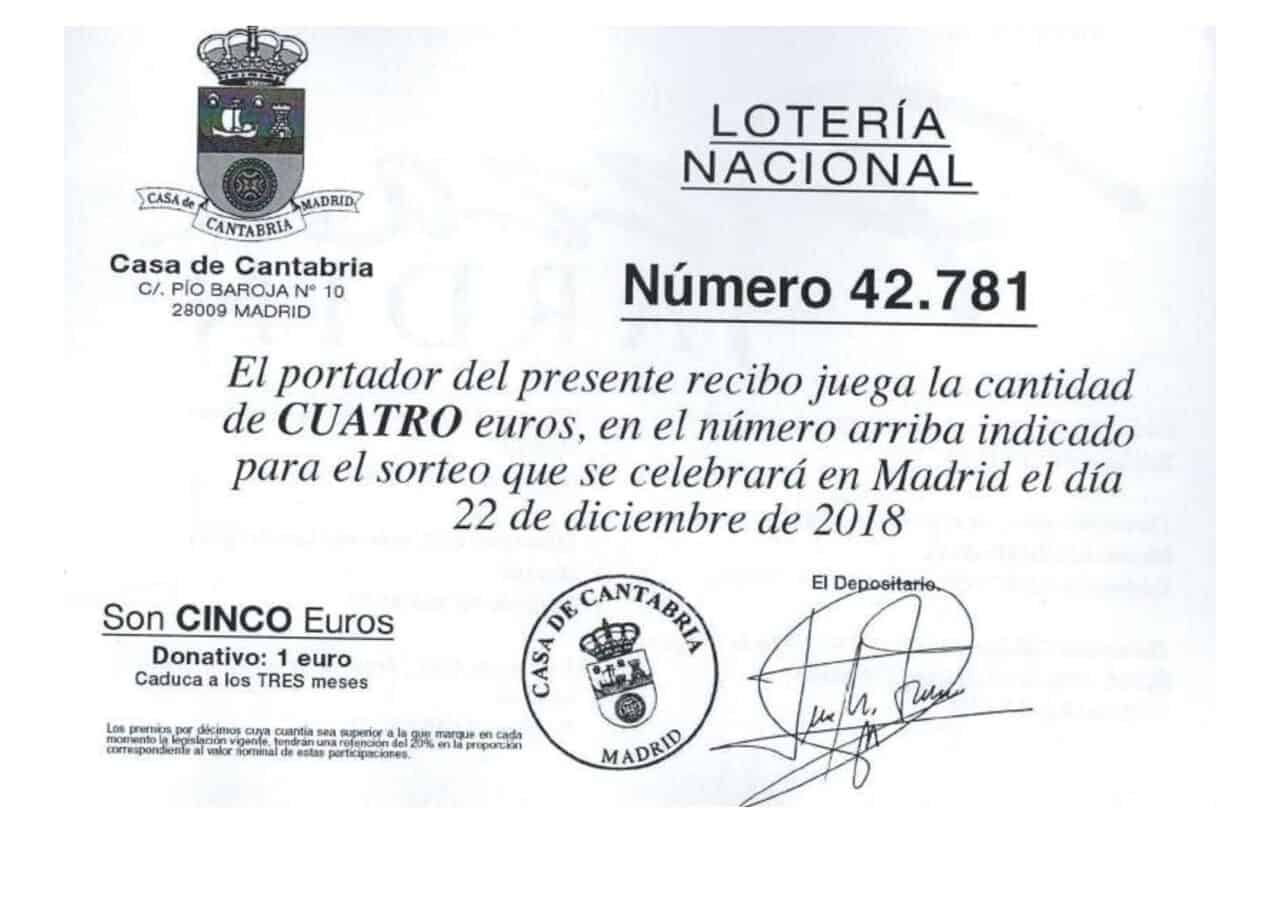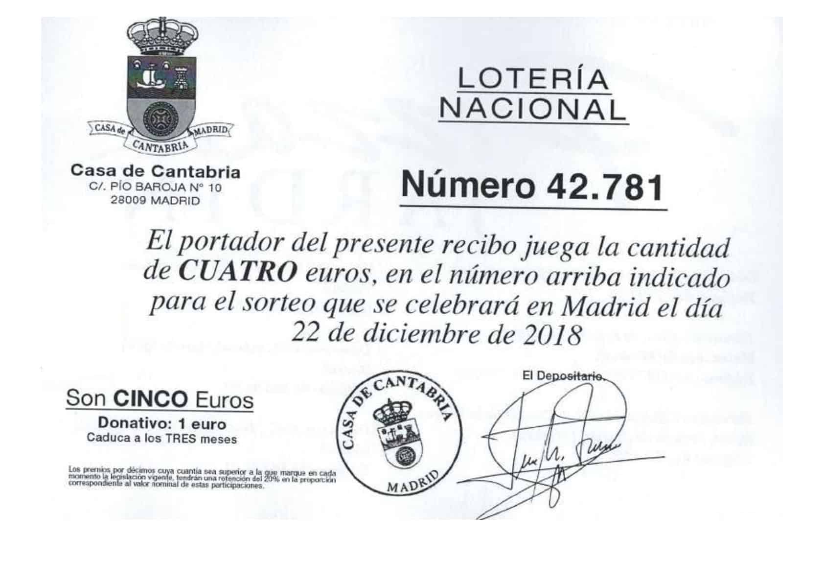 29 de octubre de 2018 Ya tenemos lotería de la Casa de Cantabria en Madrid. nº 42.781 ¡¡NO SE QUEDE SIN SU PARTICIPACIÓN!!