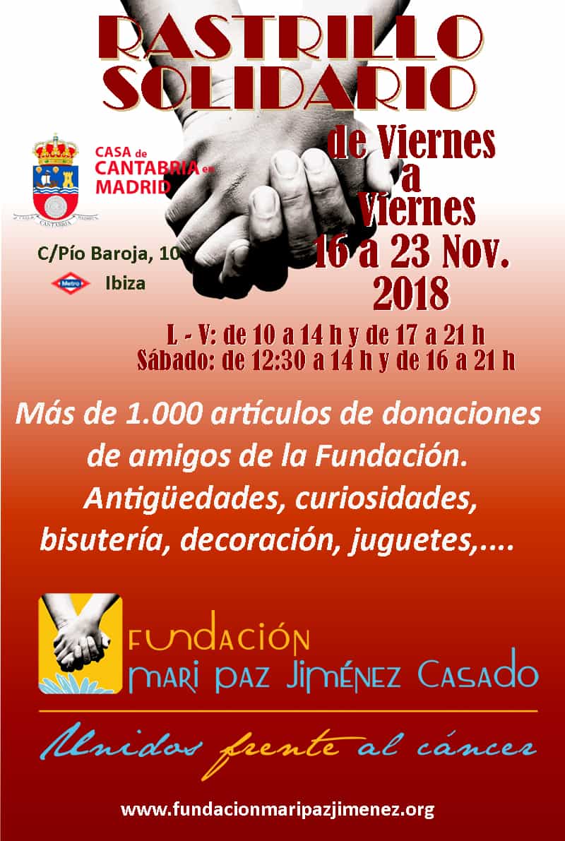En la Sala María Blanchard, primera planta, se acogerá el III Rastrillo Solidario de la Fundación Mari Paz Jiménez Casado, que bajo su lema Unidos contra el cáncer de carcoma, expondrá curiosidades, antigüedades y cosas de colección para con su venta recaudar fondos a beneficio de los fines de la Fundación.