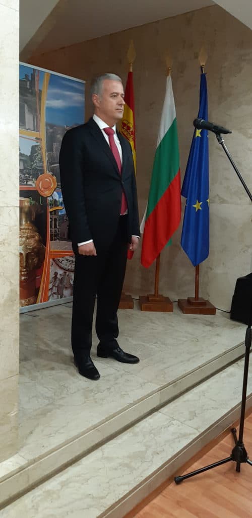 En las fotos se les puede ver acompañados del embajador y Doña Violina Petkova, Consejera, Asuntos Políticos y Culturales, y Doña Daniela Vladimirova, mezzosoprano búlgara y componente del Coro de RTVE.