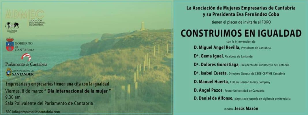 La Asociación de Mujeres Empresarias de Cantabria le invita a participar en el foro que organiza bajo el título «Construimos en Igualdad», con motivo del día Internacional de la Mujer, el próximo 8 de marzo, a las 9:30 horas en el Parlamento de Cantabria.