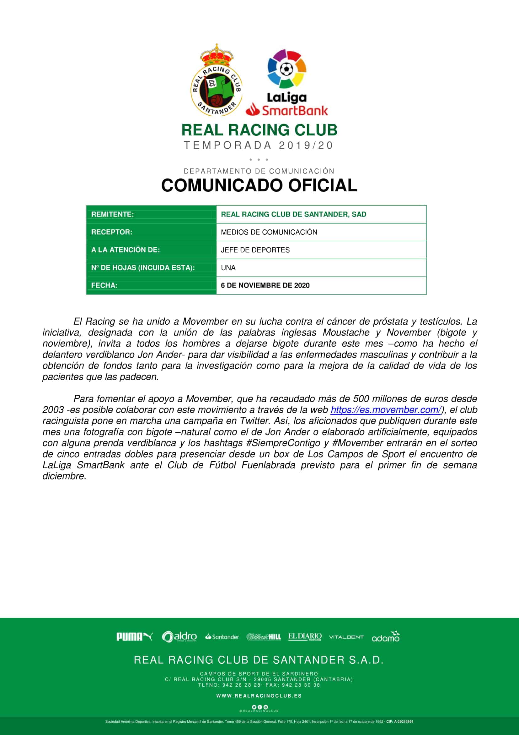 Comunicado «Movember» Real Racing Club