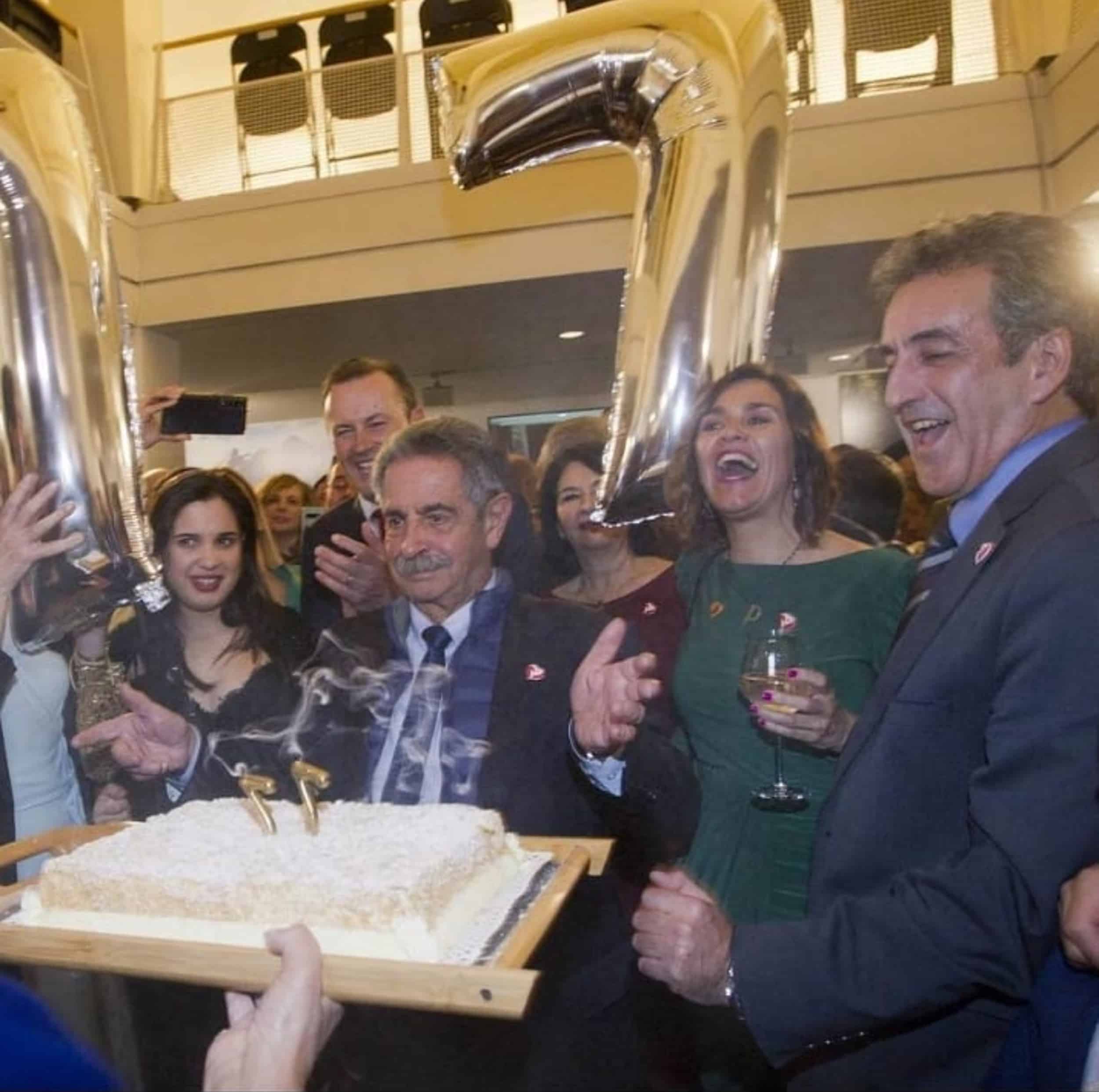 El presidente de Cantabria, Miguel Angel Revilla, cumplía ese día 77 años y fue sorprendido por globos y tarta de celebración, lo que supuso el broche final del evento.