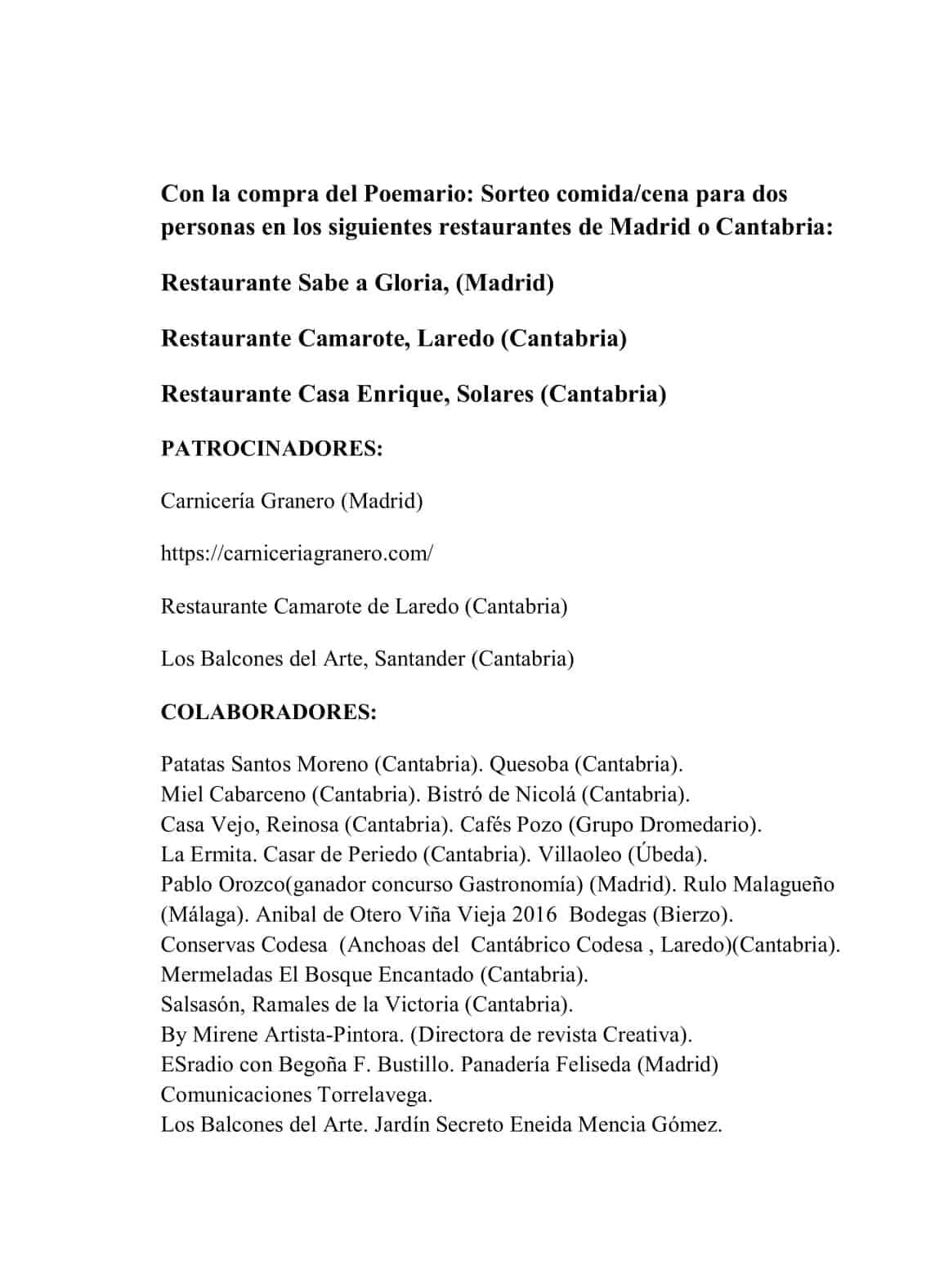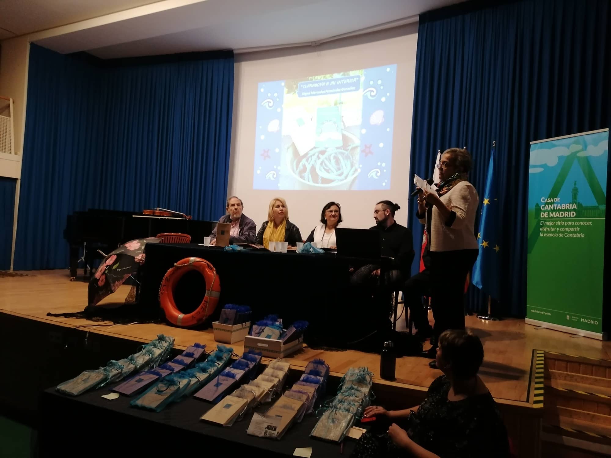Siendo la autora miembro de la Asociación Círculo Gastronómico Cultural se volcó totalmente en que la ocasión sirviera para la degustación por parte de los asistentes de productos cántabros, desde quesadas, vino, mermeladas, anchoas, panes…cuyo listado de patrocinadores pueden ver en el documento adjunto del programa de mano de la presentación.