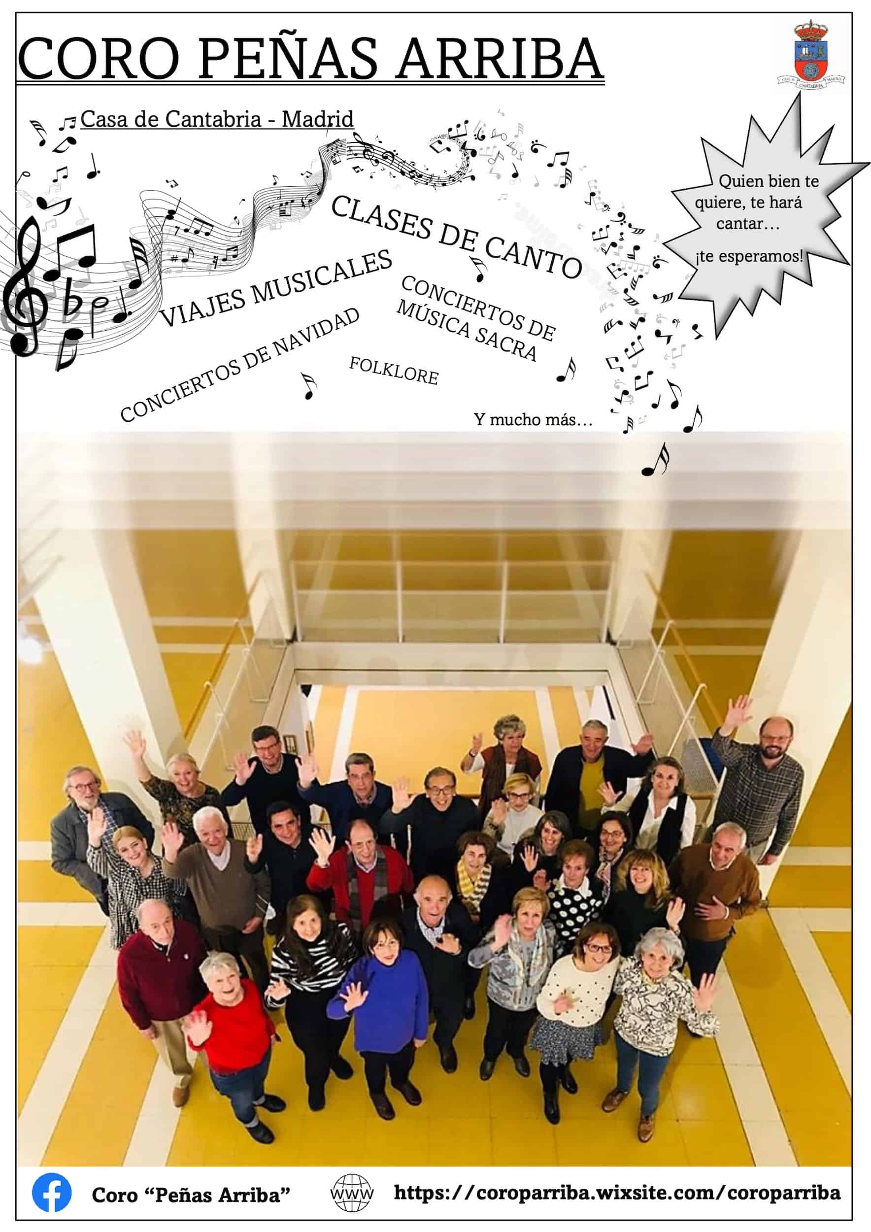 Si amas la música y te gusta cantar, ¡únete al coro polifónico «Peñas Arriba» de la Casa de Cantabria de Madrid! Viajes musicales, conciertos, clases de canto, talleres y mucho más.
