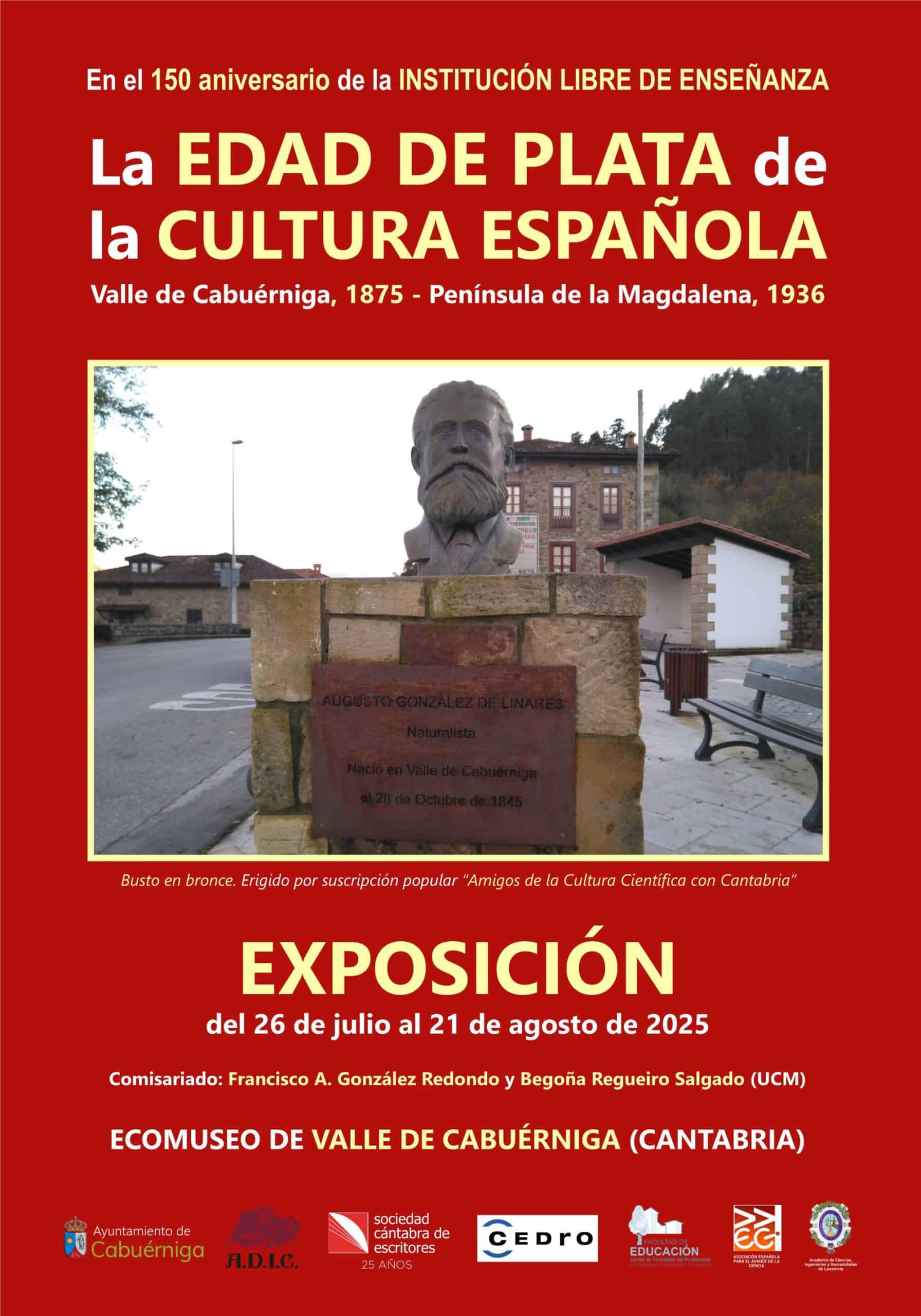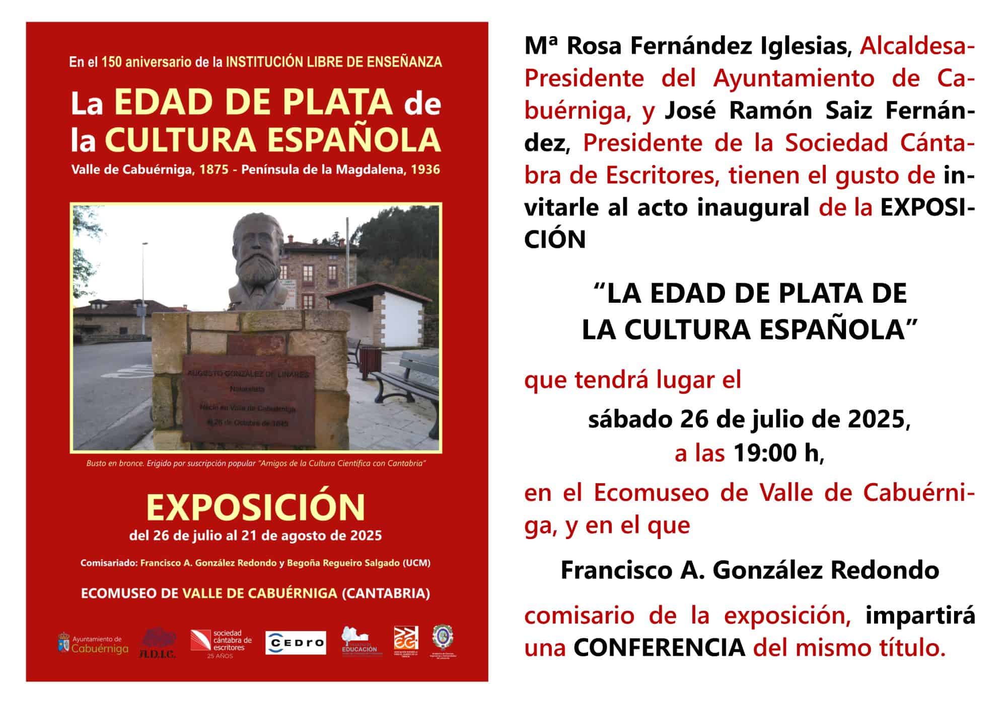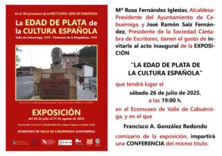 - El sábado 26 de julio, a las 19:30 h, conferencia-visita inaugural de la exposición «La Edad de Plata de la Cultura española», organizada desde la Sociedad Cántabra de Escritores en el Ecomuseo de Valle de Cabuérniga: