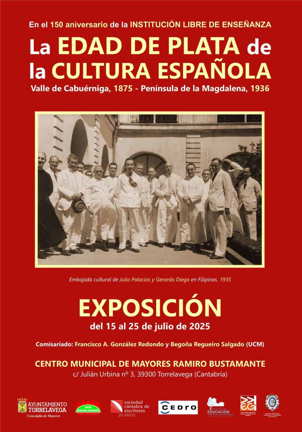 - El martes 15 de julio, a las 19:30 h, conferencia-visita inaugural de la exposición «La Edad de Plata de la Cultura española», en el Centro Municipal de Mayores «Ramiro Bustamante» de Torrelavega, organizada por la Sociedad Cántabra de Escritores en el 25 aniversario de su creación: