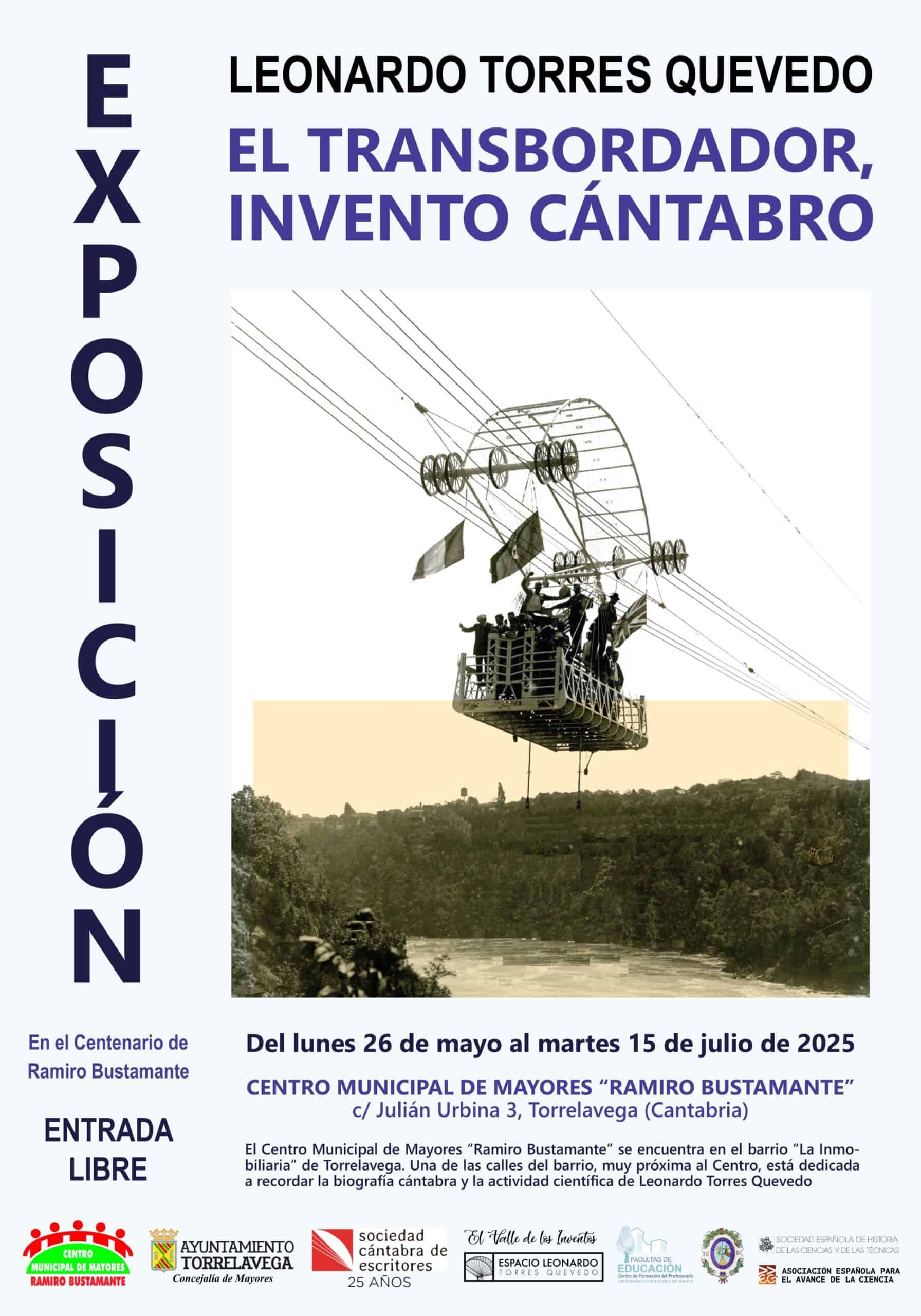 - Hasta el jueves 7 de agosto puede visitarse la exposición «Leonardo Torres Quevedo. El Transbordador, invento cántabro», en el Centro de Mayores «Ramiro Bustamante» de Torrelavega, organizada desde la Sociedad Cántabra de Escritores: Exposición El Transbordador Invento cántabro en Torrelavega