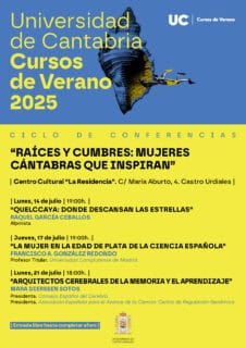 - El jueves 17 de julio, a las 19:00 h, conferencia «La Mujer en la Edad de Plata de la Ciencia española» en el Centro cultural La Residencia de Castro Urdiales, organizada en el marco de los Cursos de Verano 2025 de la Universidad de Cantabria: