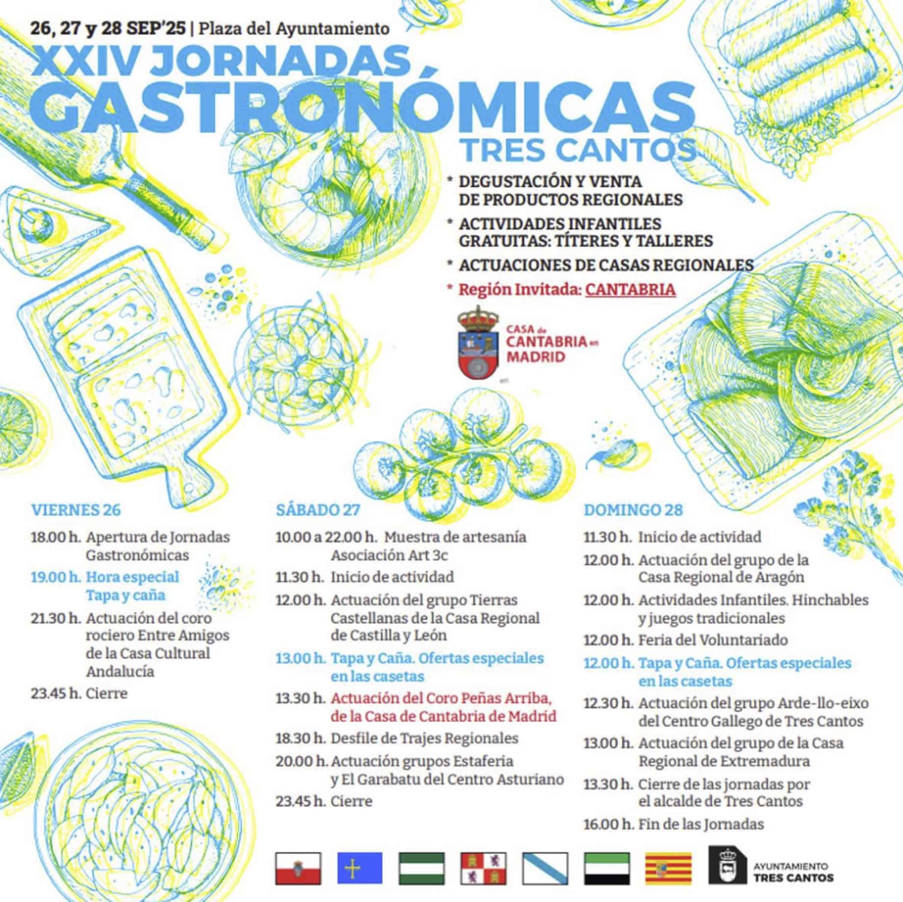 La Casa de Cantabria en Madrid participará como región invitada en las XXIV Jornadas Gastronómicas de Tres Cantos, que se celebrarán los días 26, 27 y 28 de septiembre de 2025 en la Plaza del Ayuntamiento.