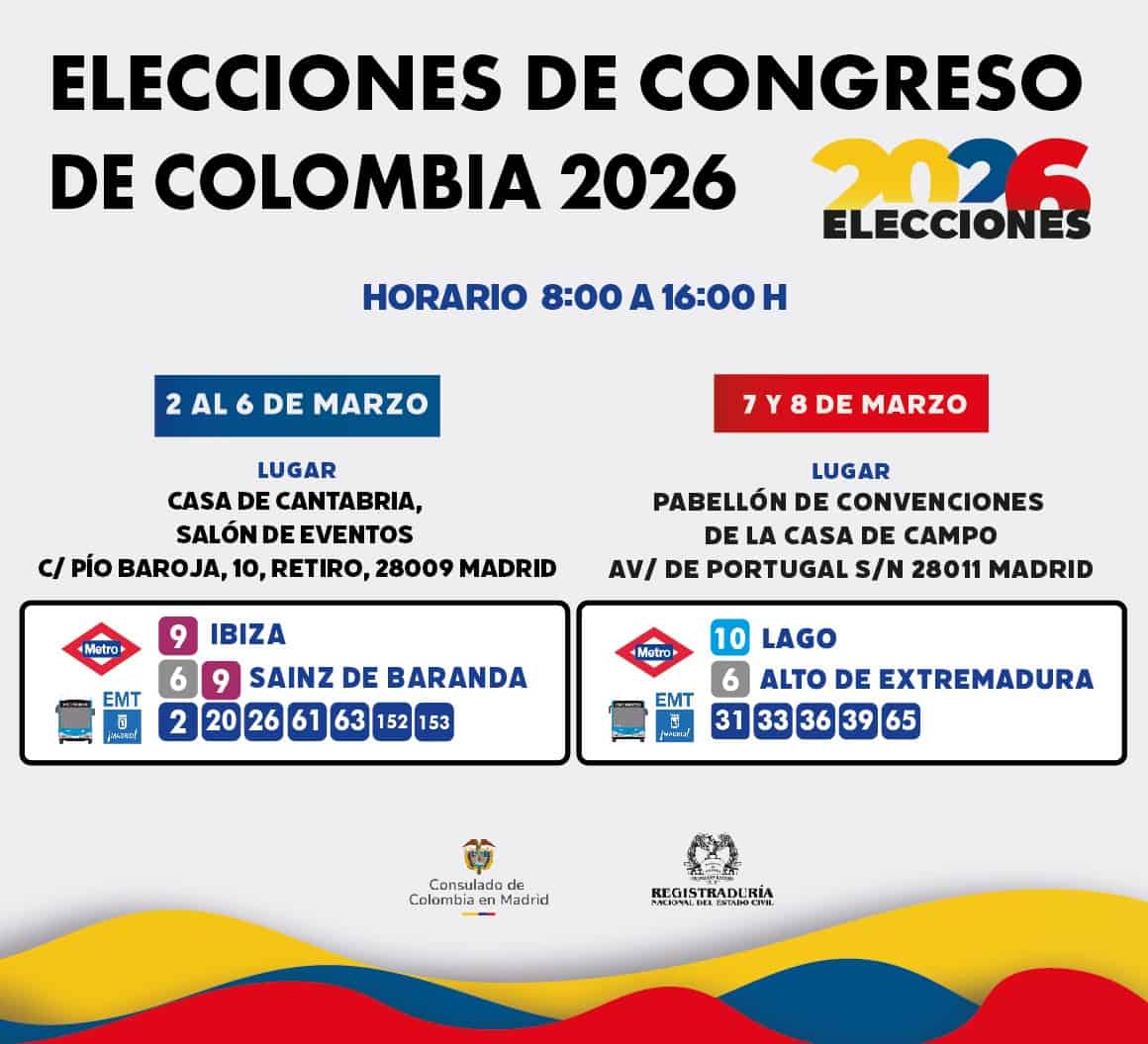Nuestra institución ha sido seleccionada como centro de votación para las próximas Elecciones de Congreso de Colombia 2026, reafirmando nuestro compromiso como espacio de acogida y servicio ciudadano en el corazón de Madrid. La jornada electoral se llevará a cabo durante la primera semana de marzo, específicamente del lunes 2 al viernes 6 de marzo, facilitando así que los ciudadanos colombianos residentes en la capital puedan ejercer su derecho al voto en el exterior.