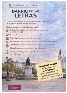 Como complemento a las sesiones de debate, la Tertulia Literaria organiza una actividad exterior exclusiva: una excursión por el Barrio de las Letras, recorrido que permitirá a los miembros descubrir los rincones de este emblemático barrio literario madrileño.