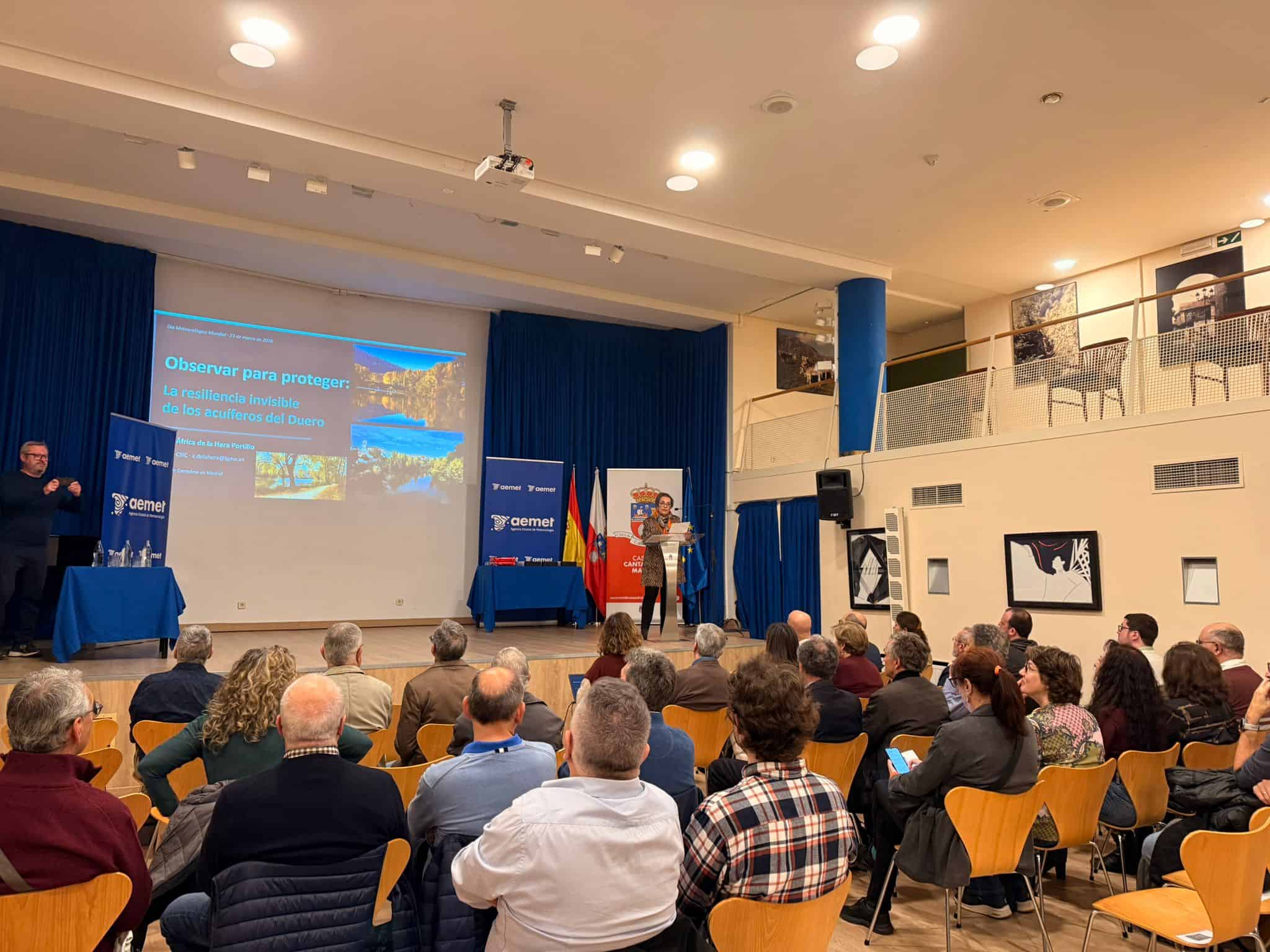 La jornada fue inaugurada por la presidenta de la Casa de Cantabria, Carmen Ruiz Ballesteros, quien dio la bienvenida a los asistentes y autoridades presentes. El programa científico central estuvo a cargo de la Dra. África de la Hera Portillo, investigadora del IGME-CSIC, quien impartió la conferencia titulada «Observar para proteger: la resiliencia invisible de los acuíferos del Duero», subrayando la importancia de la monitorización ambiental para la sostenibilidad de nuestros recursos hídricos.